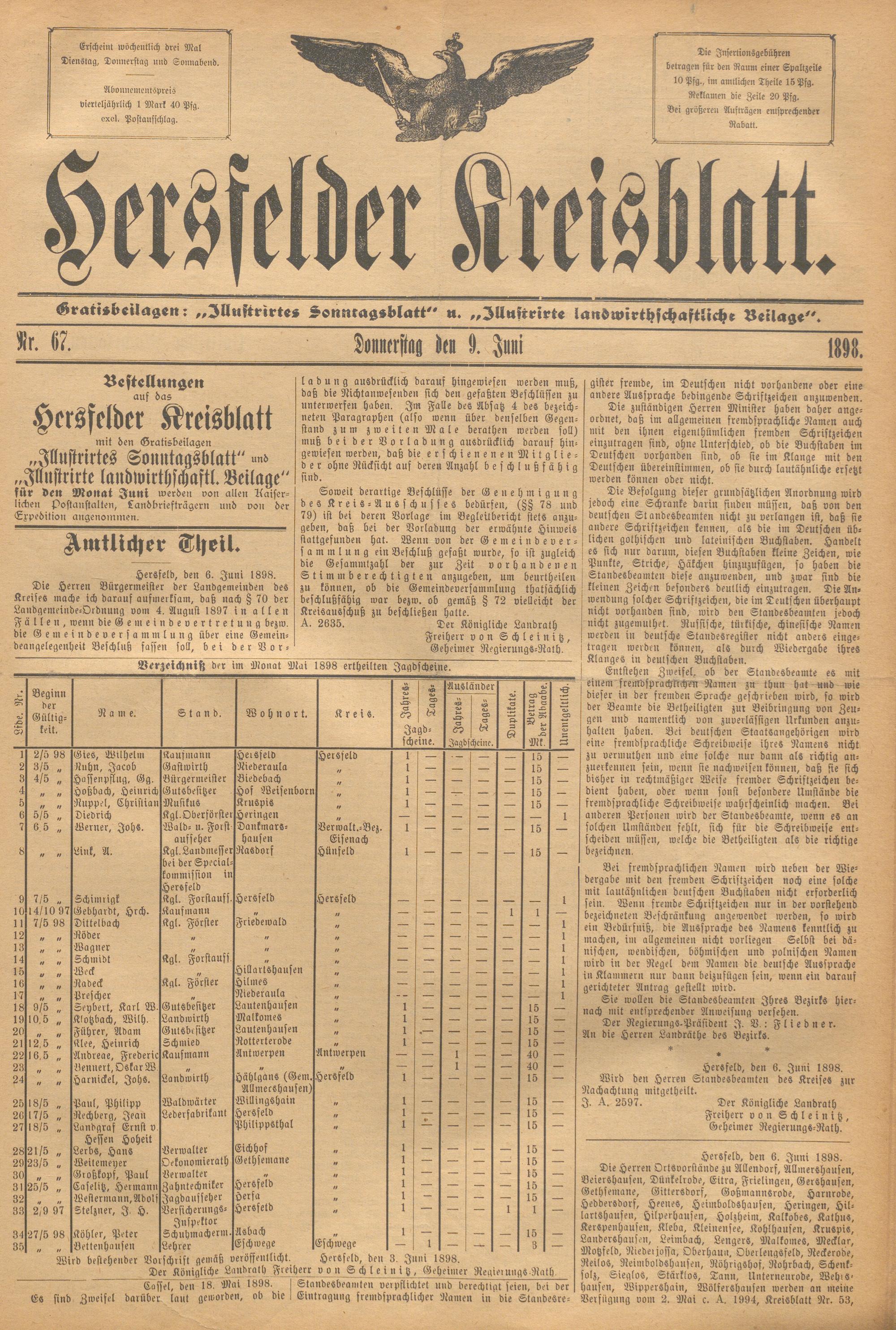 Hersfelder Kreisblatt. 1868-1913