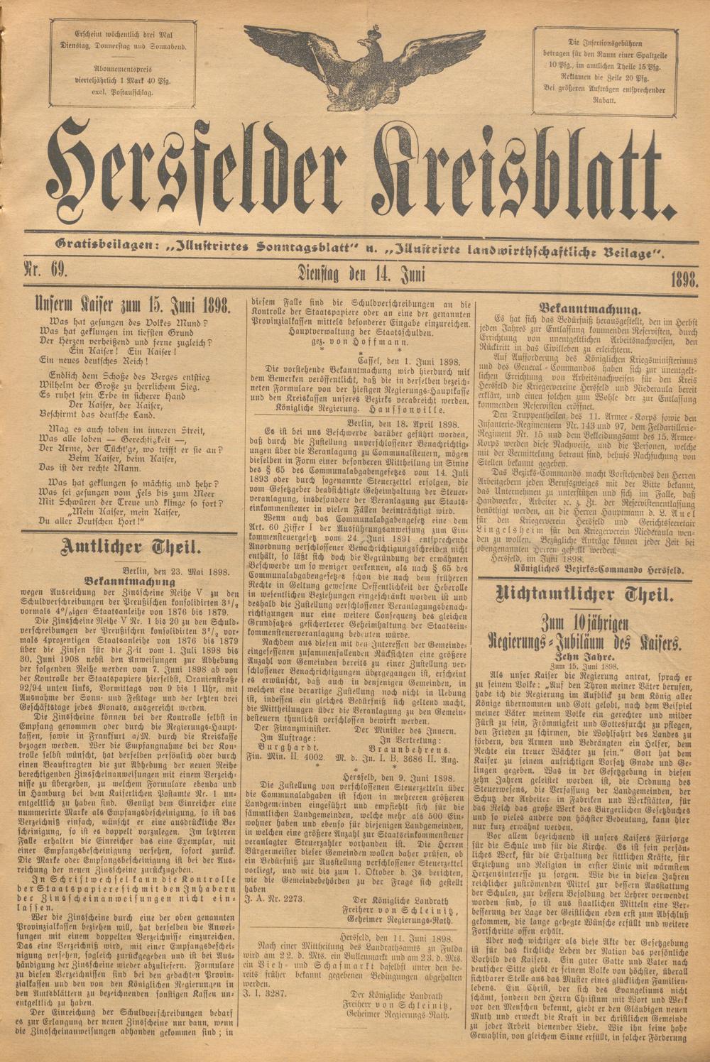 Hersfelder Kreisblatt. 1868-1913