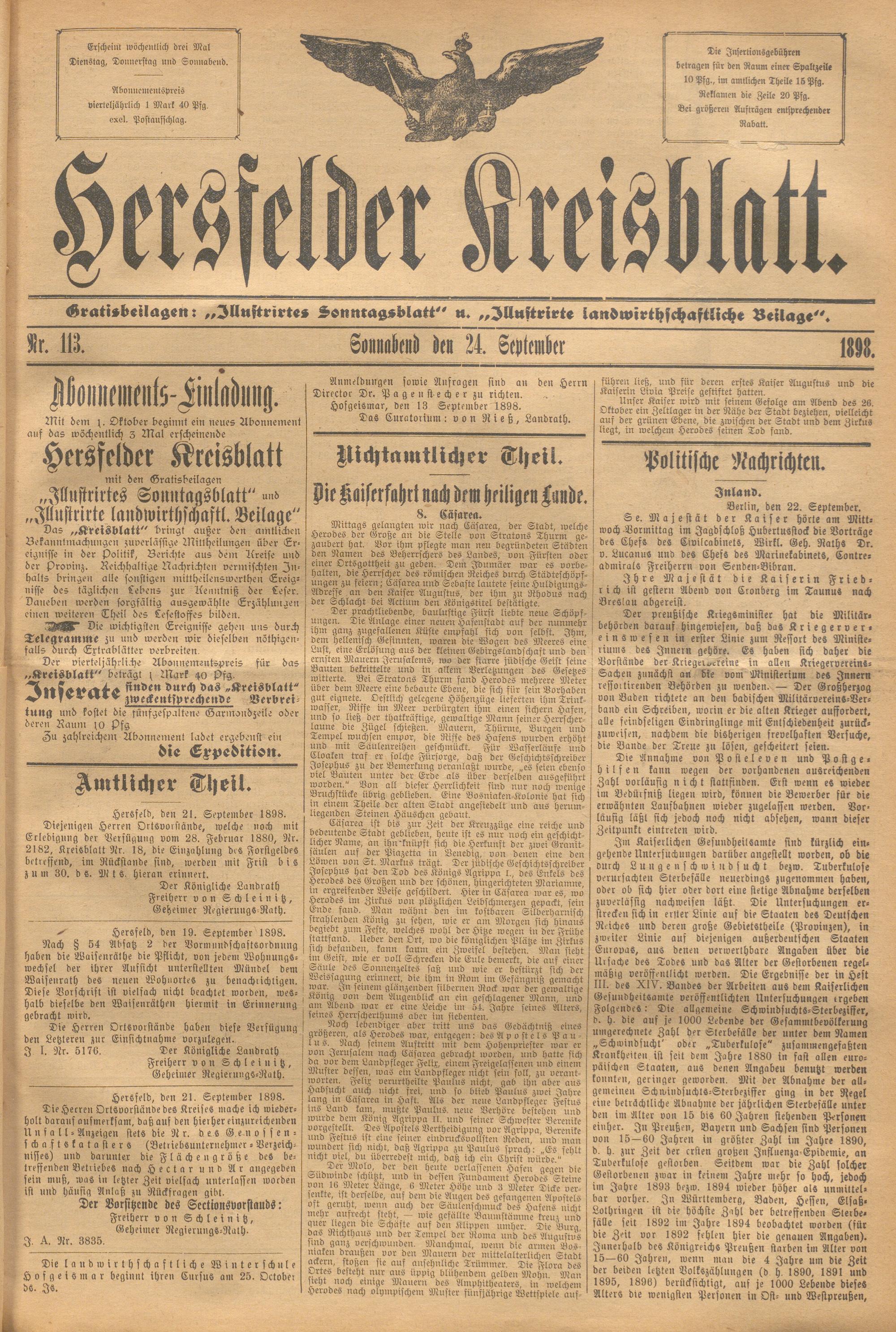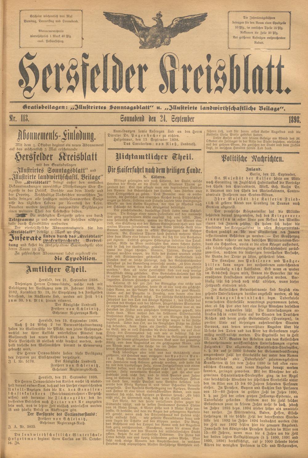 Hersfelder Kreisblatt. 1868-1913