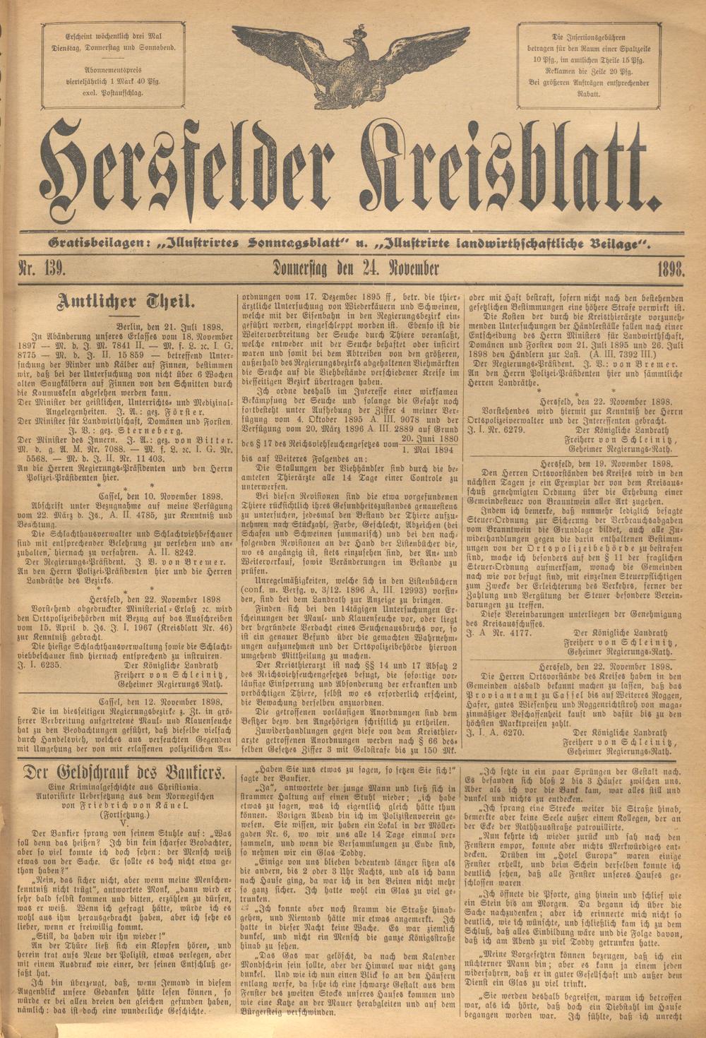 Hersfelder Kreisblatt. 1868-1913