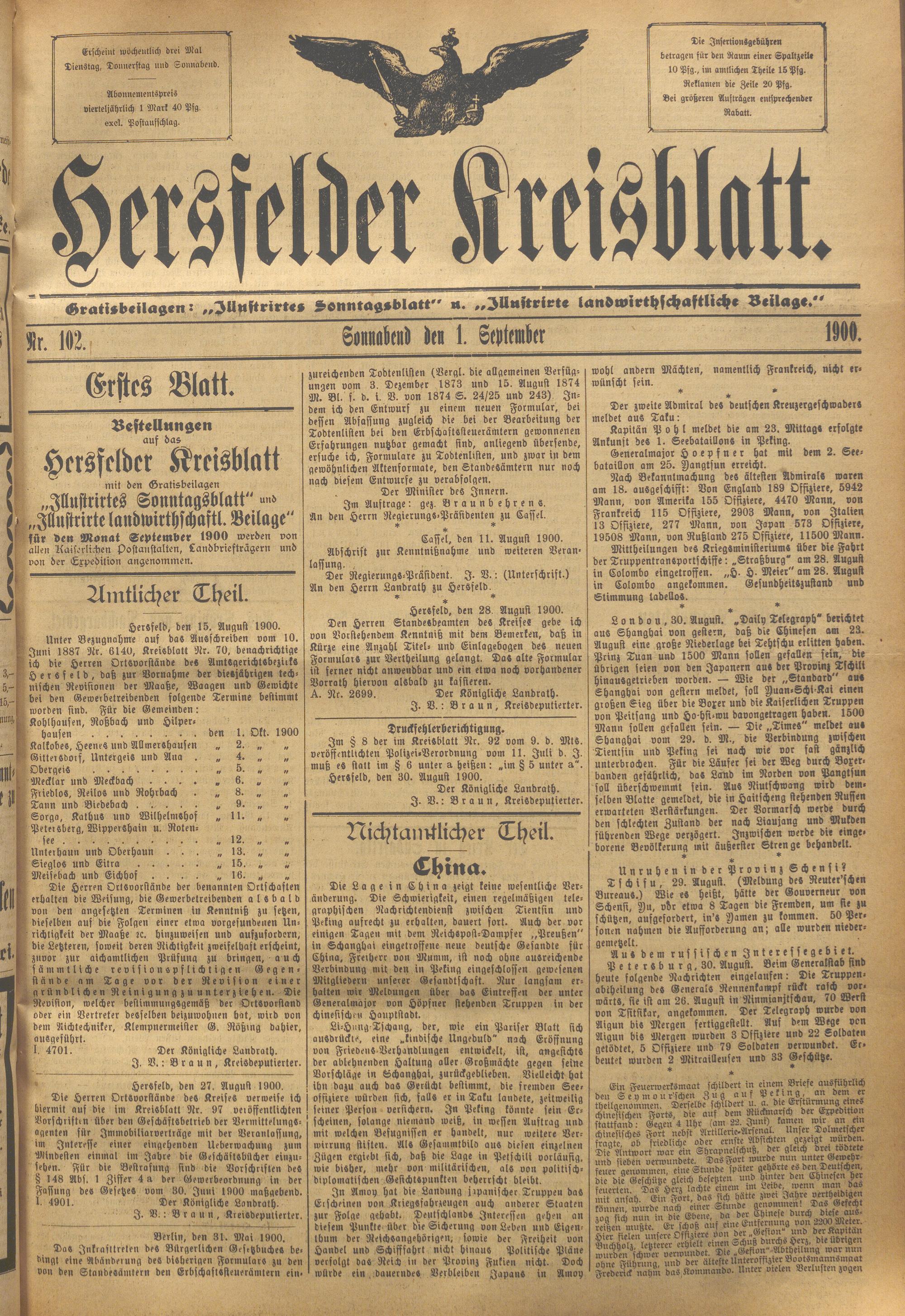 Hersfelder Kreisblatt. 1868-1913