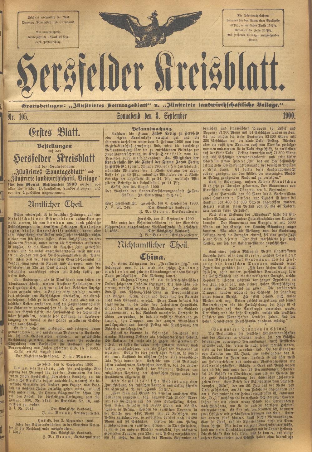 Hersfelder Kreisblatt. 1868-1913
