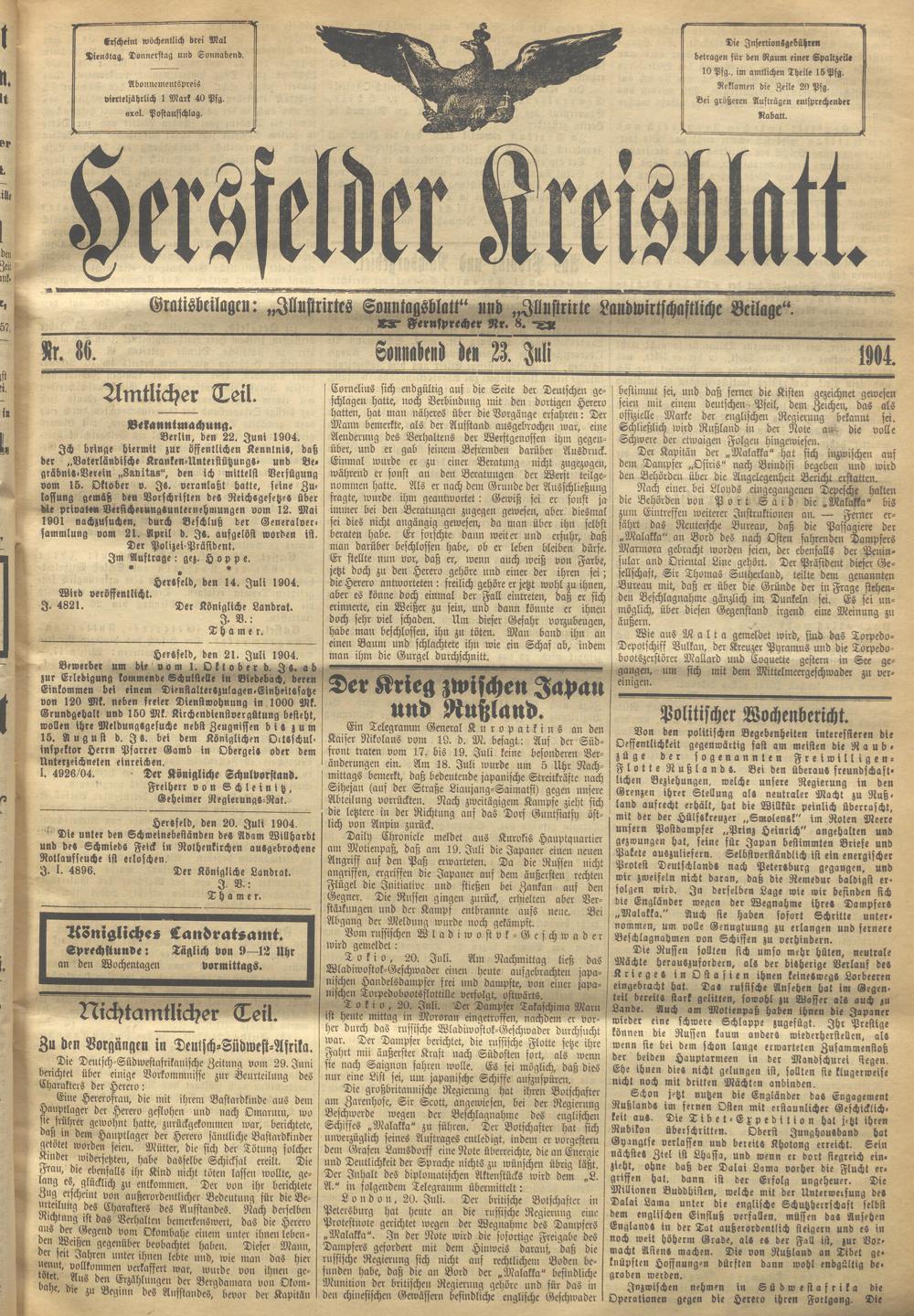 Hersfelder Kreisblatt. 1868-1913