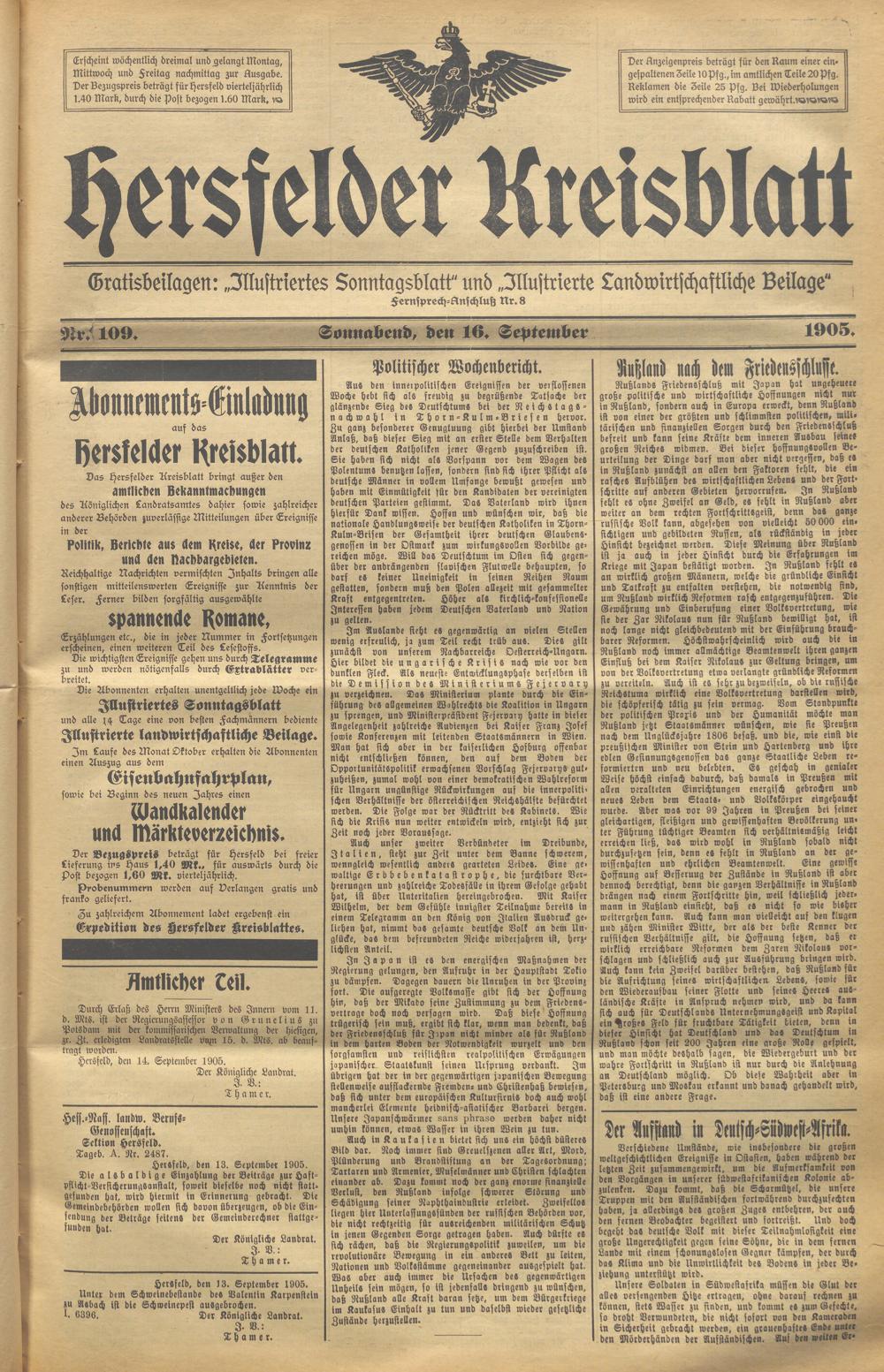 Hersfelder Kreisblatt. 1868-1913
