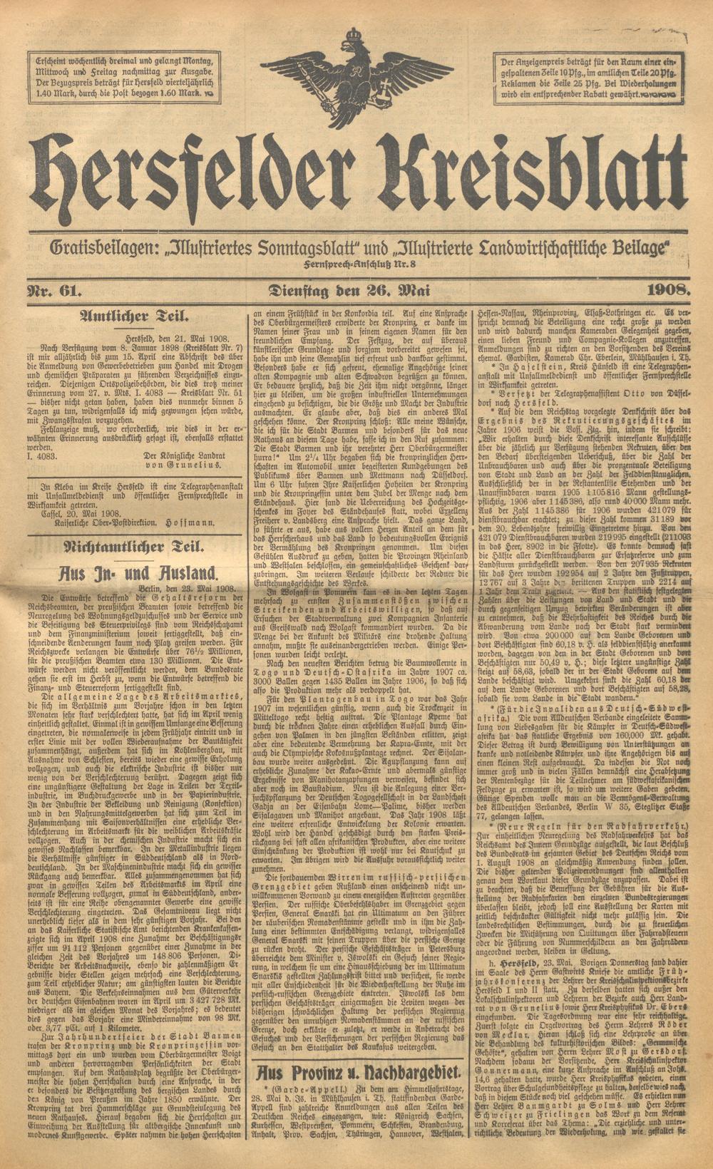 Hersfelder Kreisblatt. 1868-1913