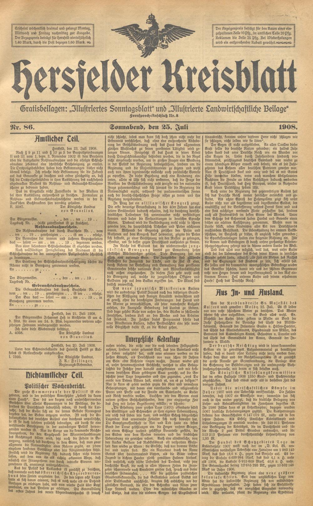Hersfelder Kreisblatt. 1868-1913