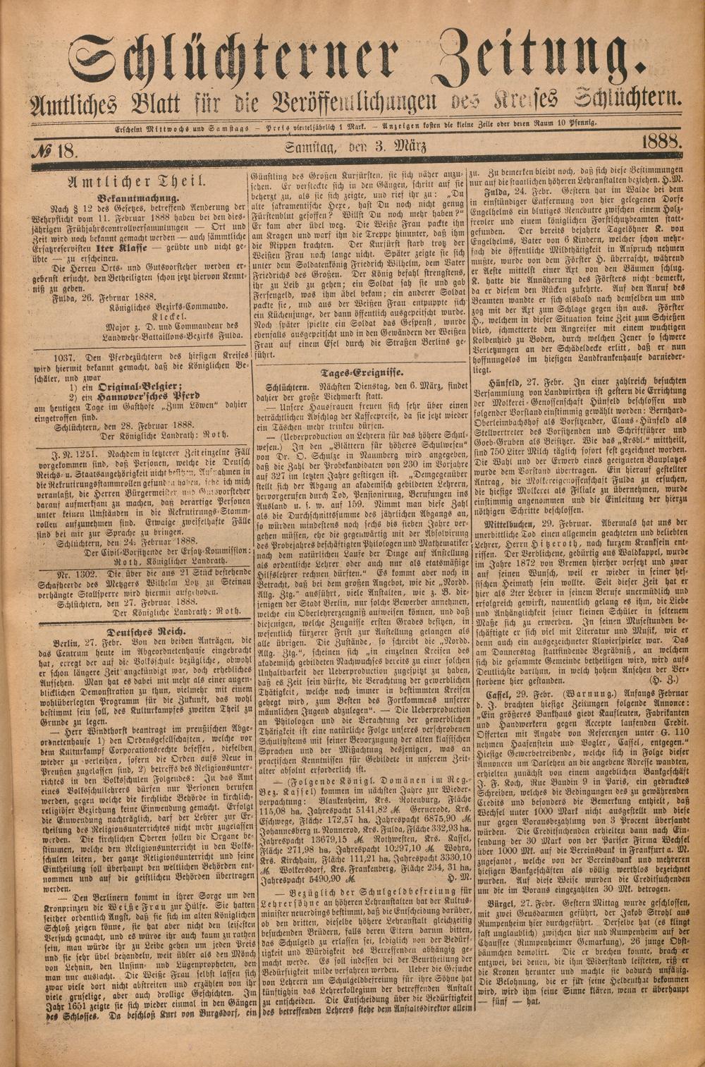 Schlüchterner Zeitung. 1887-1941