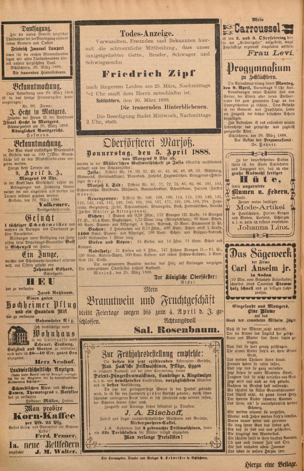 Schlüchterner Zeitung. 1887-1941