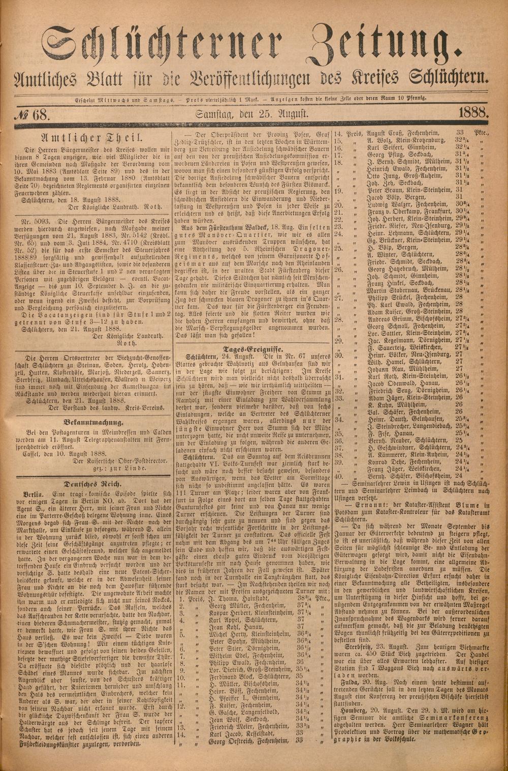 Schlüchterner Zeitung. 1887-1941