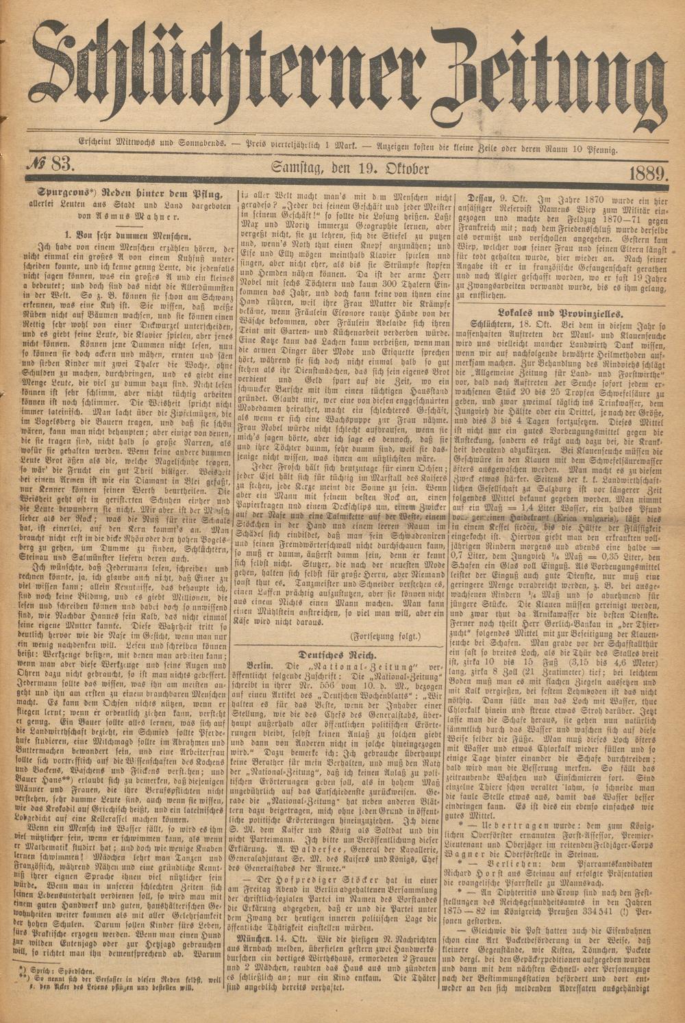 Schlüchterner Zeitung. 1887-1941