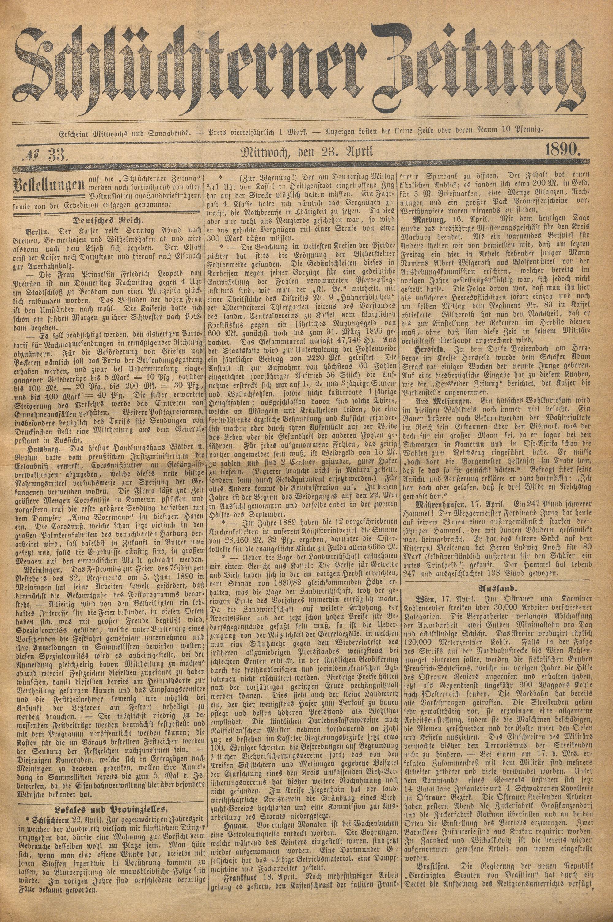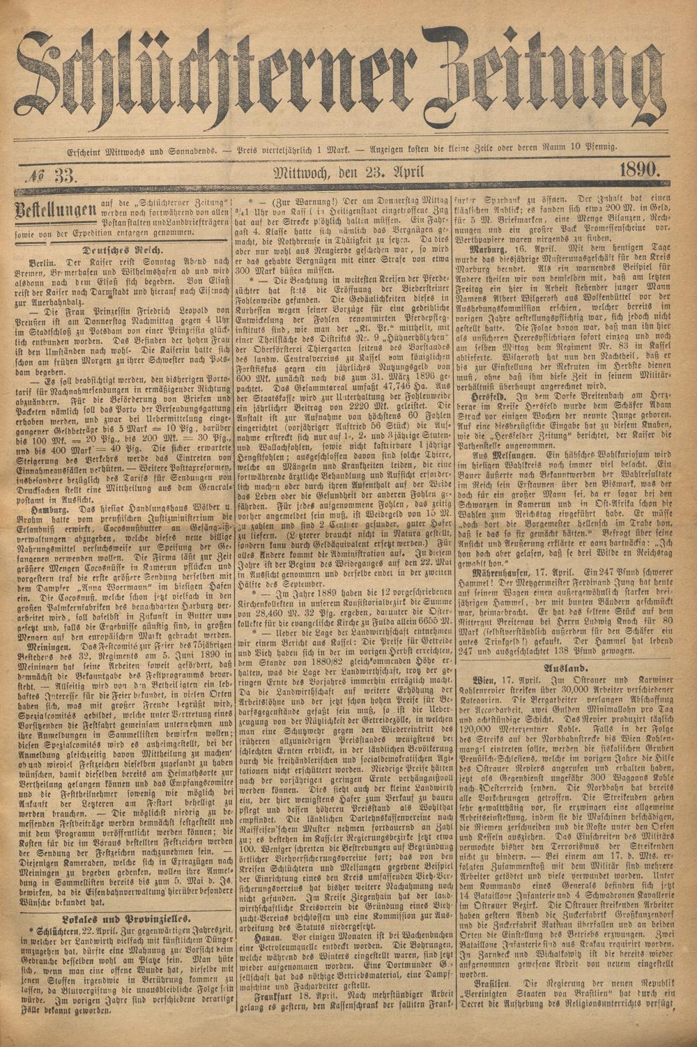 Schlüchterner Zeitung. 1887-1941