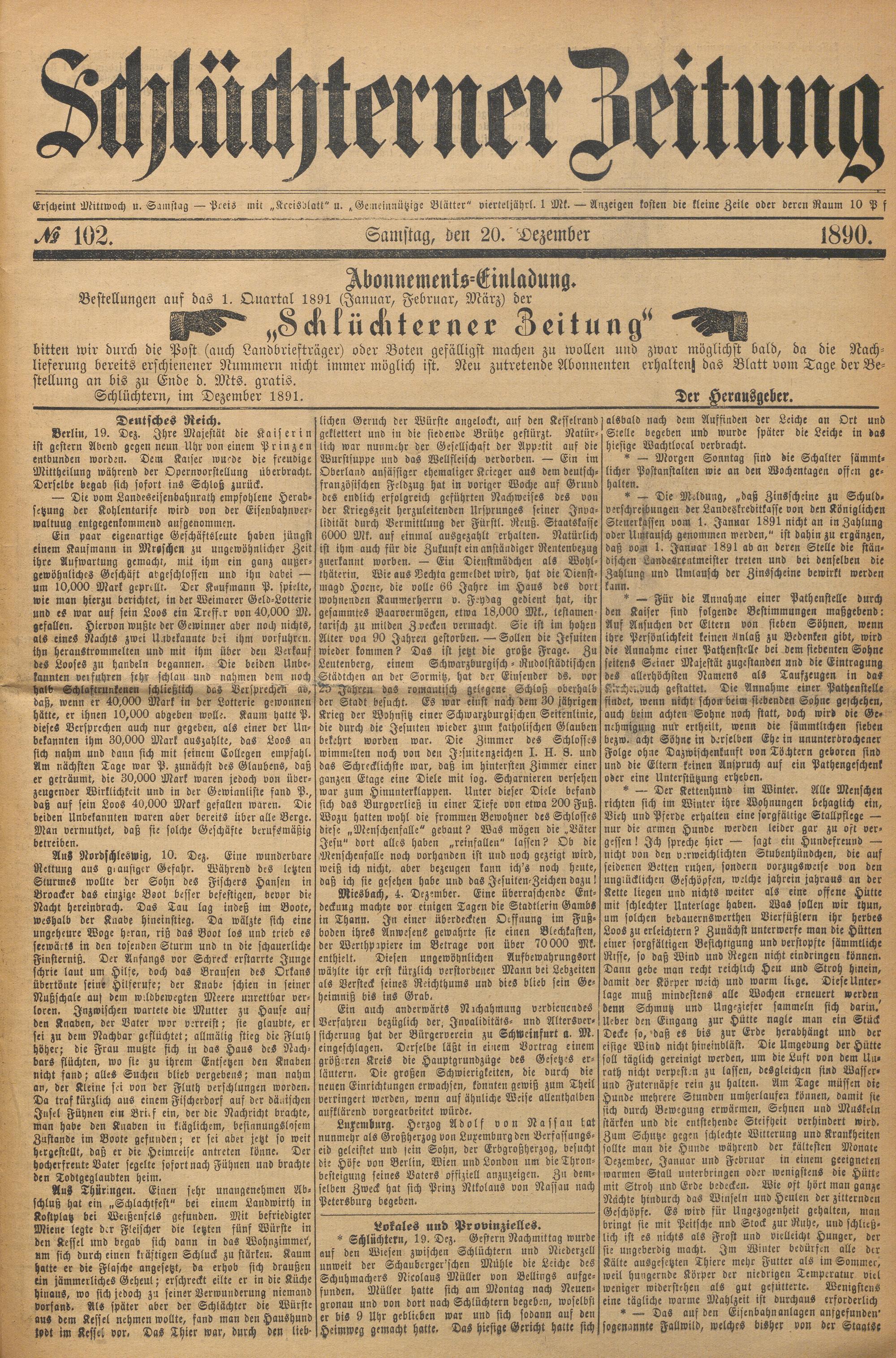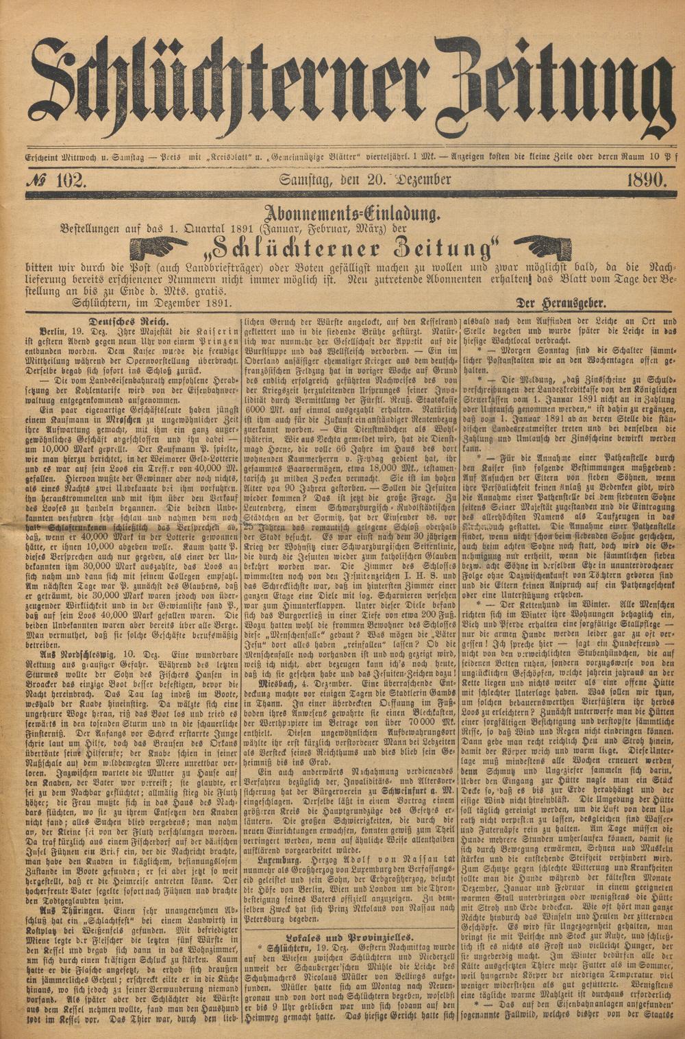 Schlüchterner Zeitung. 1887-1941