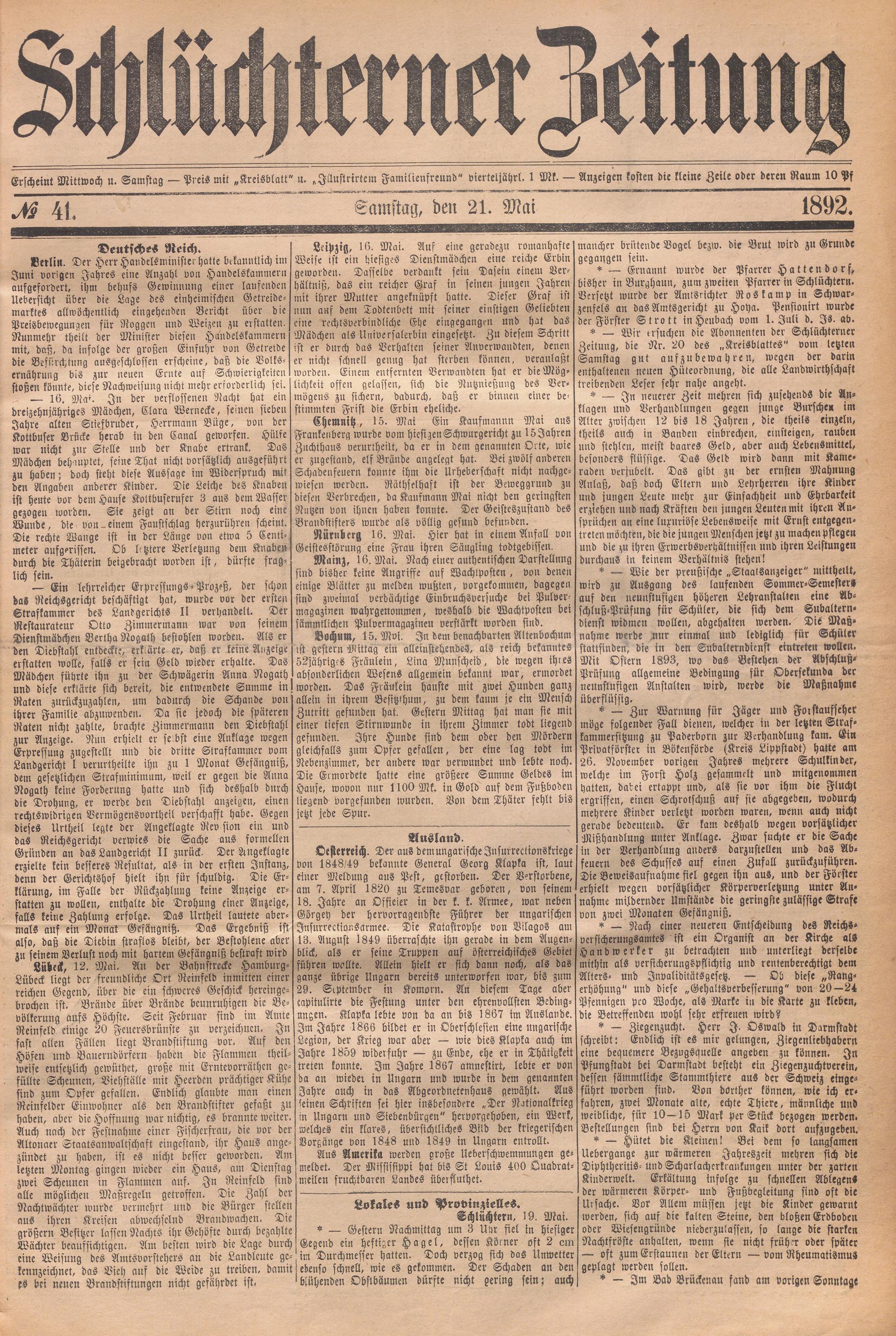 Schlüchterner Zeitung. 1887-1941