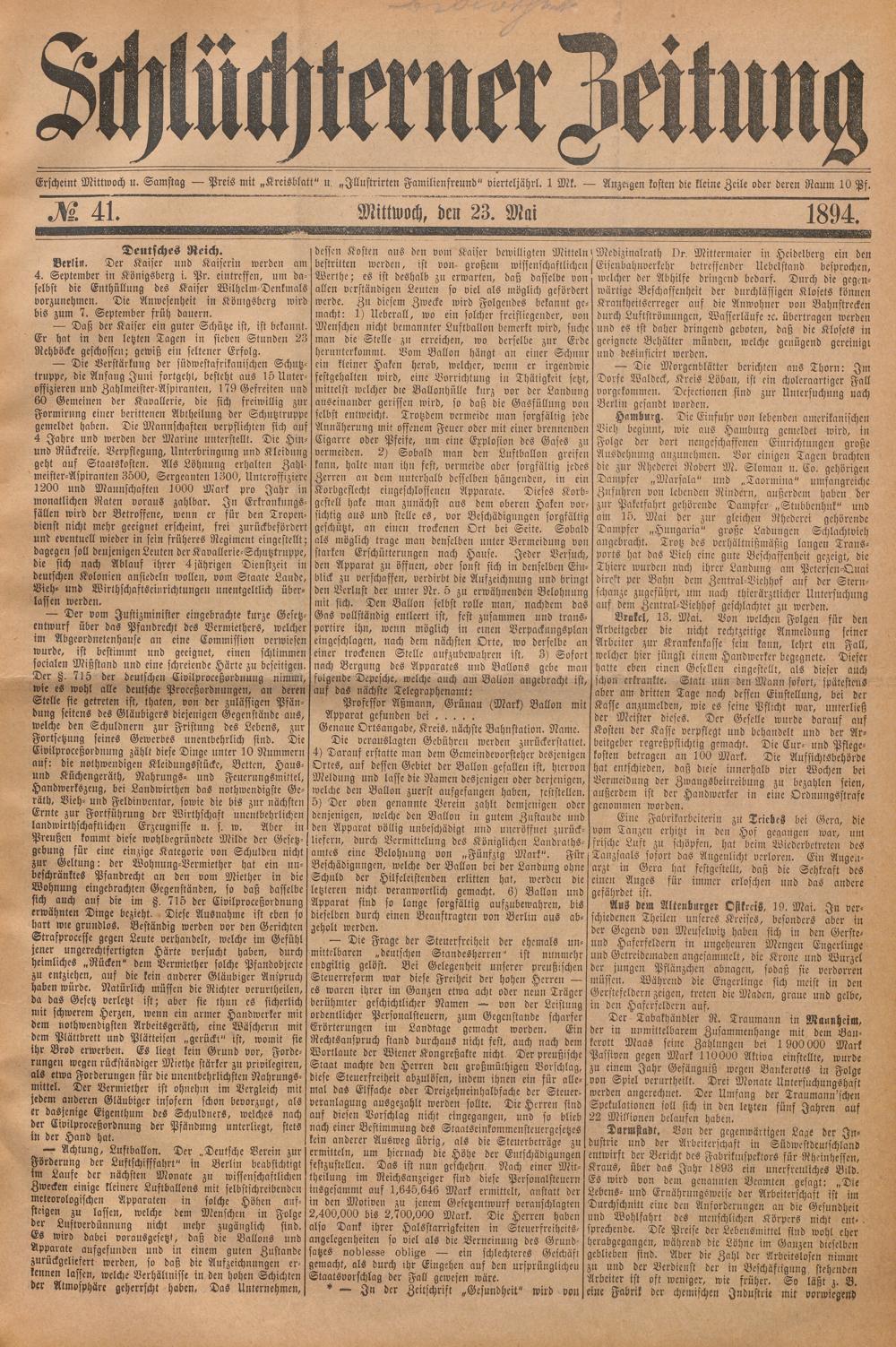 Schlüchterner Zeitung. 1887-1941