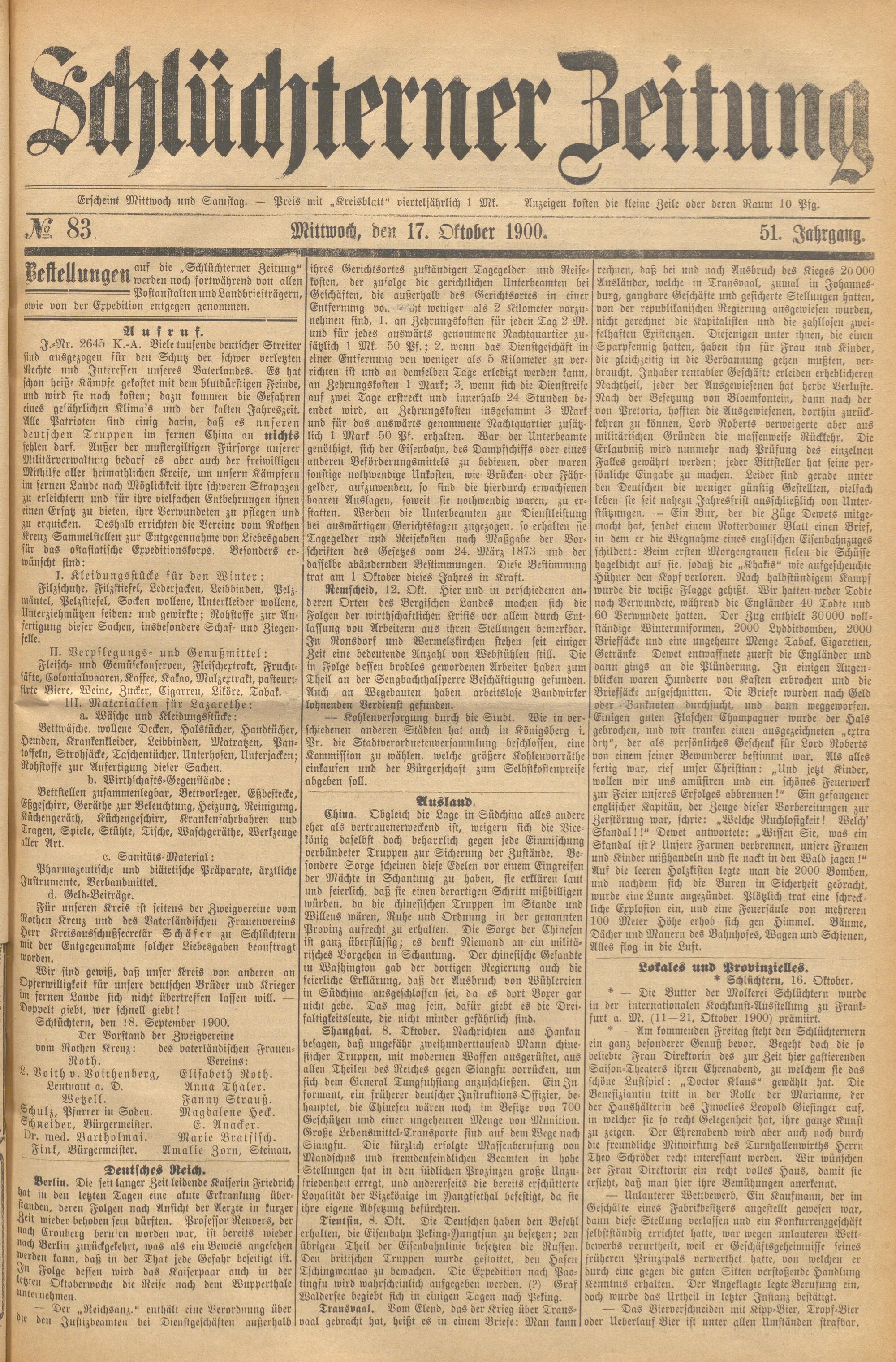 Schlüchterner Zeitung. 1887-1941