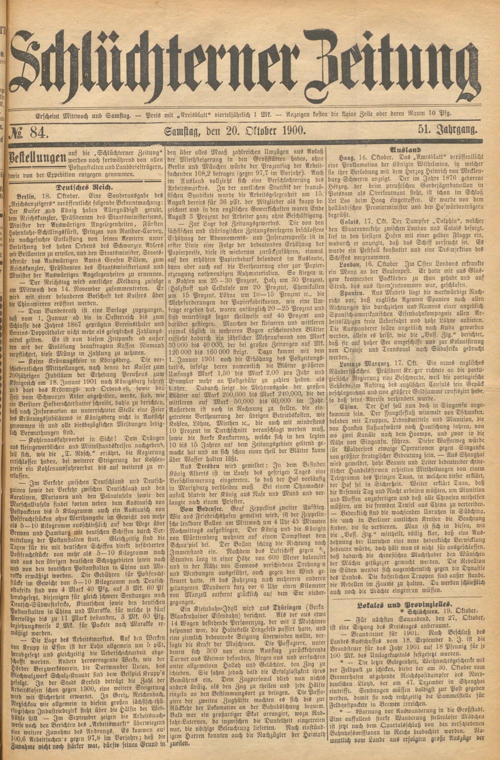 Schlüchterner Zeitung. 1887-1941