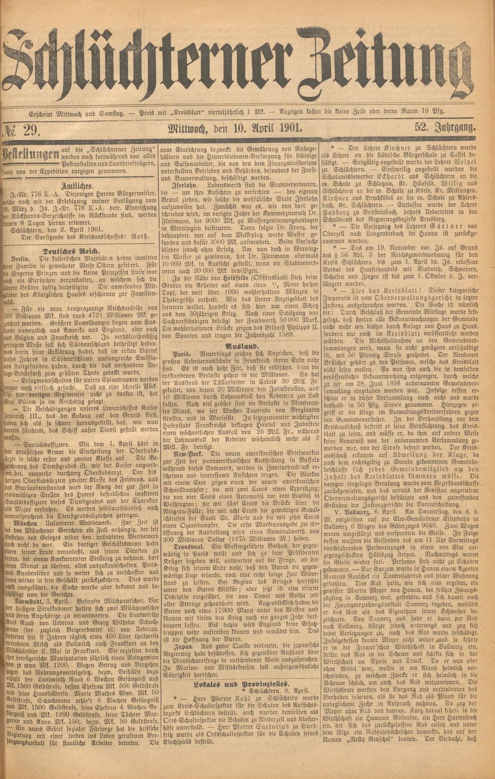Schlüchterner Zeitung. 1887-1941
