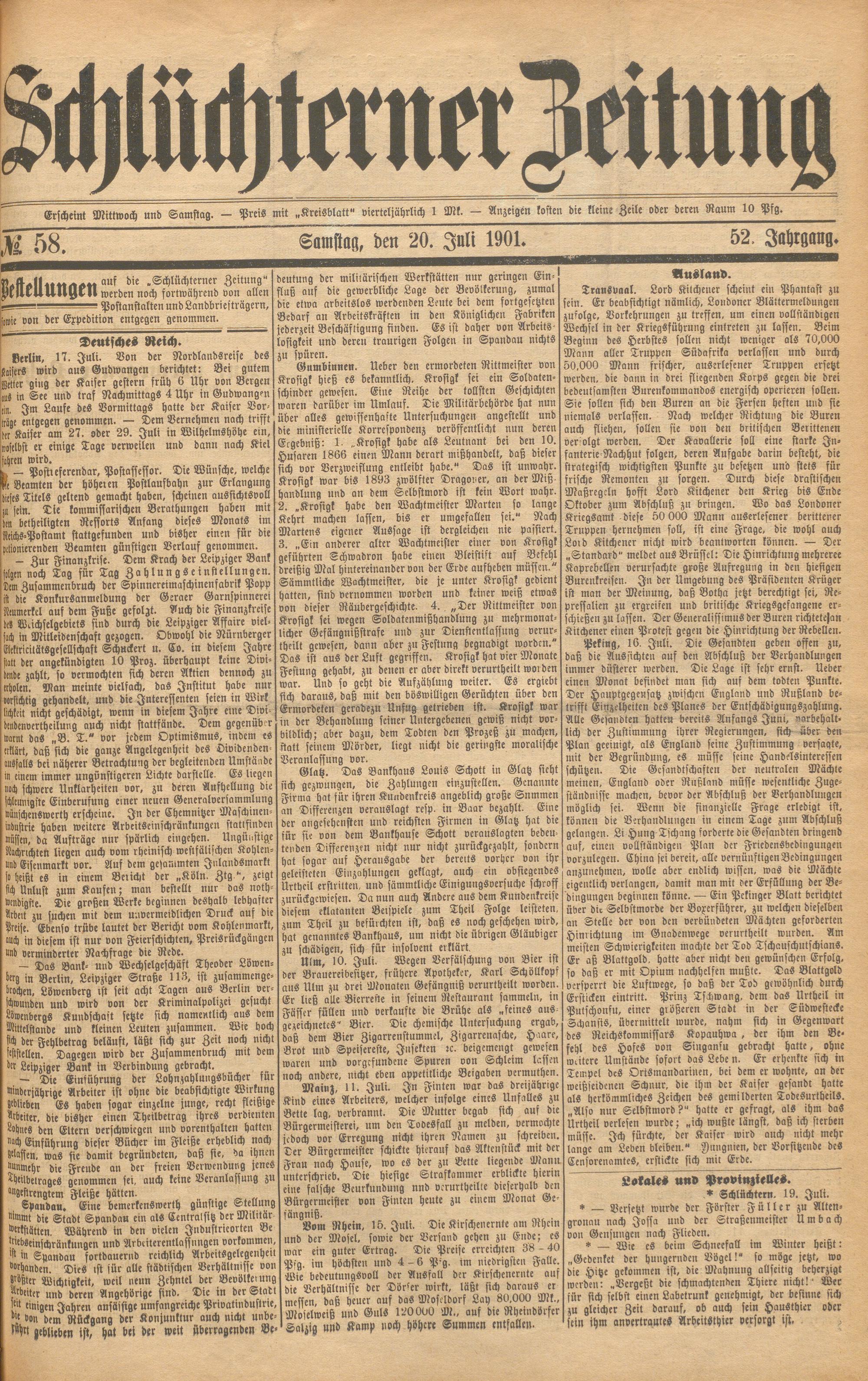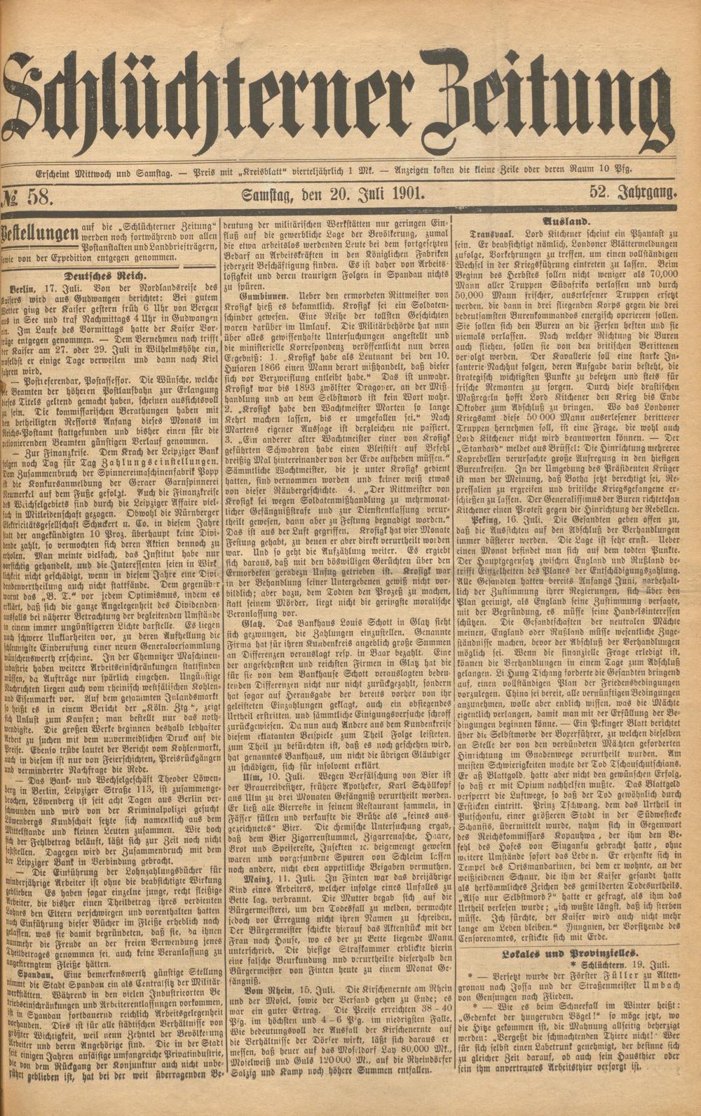 Schlüchterner Zeitung. 1887-1941