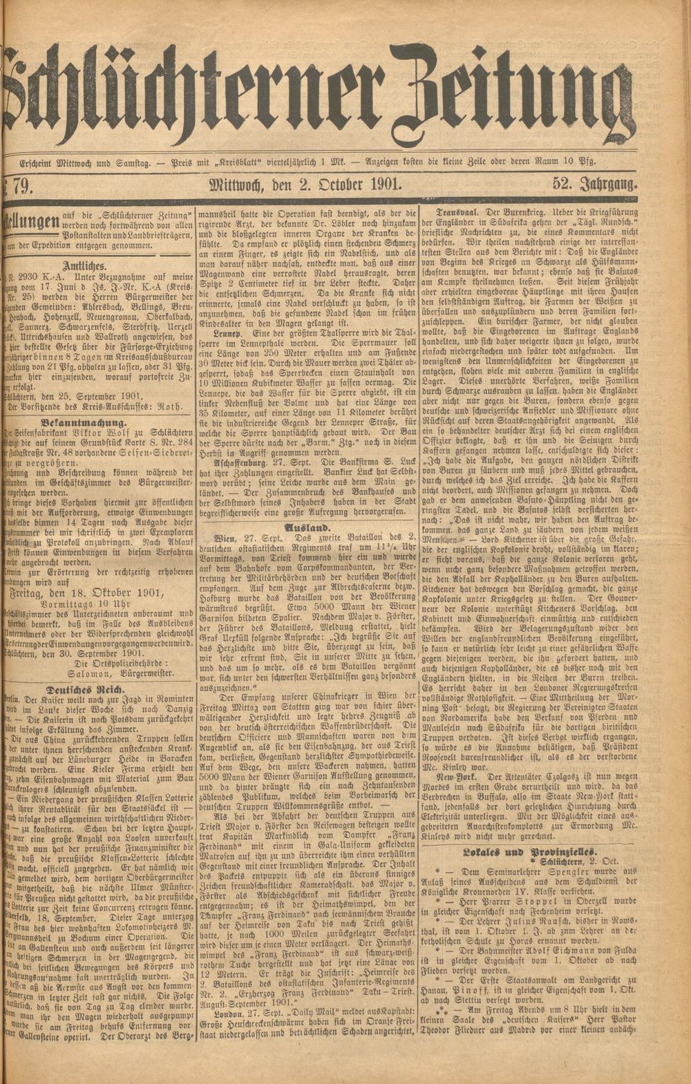 Schlüchterner Zeitung. 1887-1941