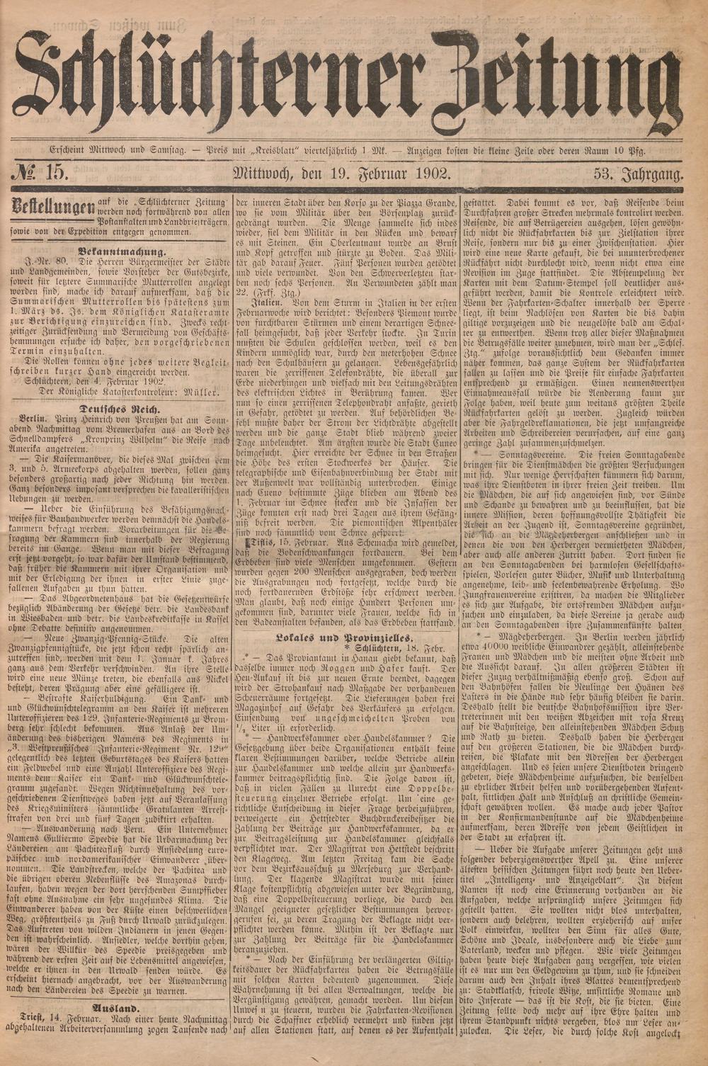 Schlüchterner Zeitung. 1887-1941