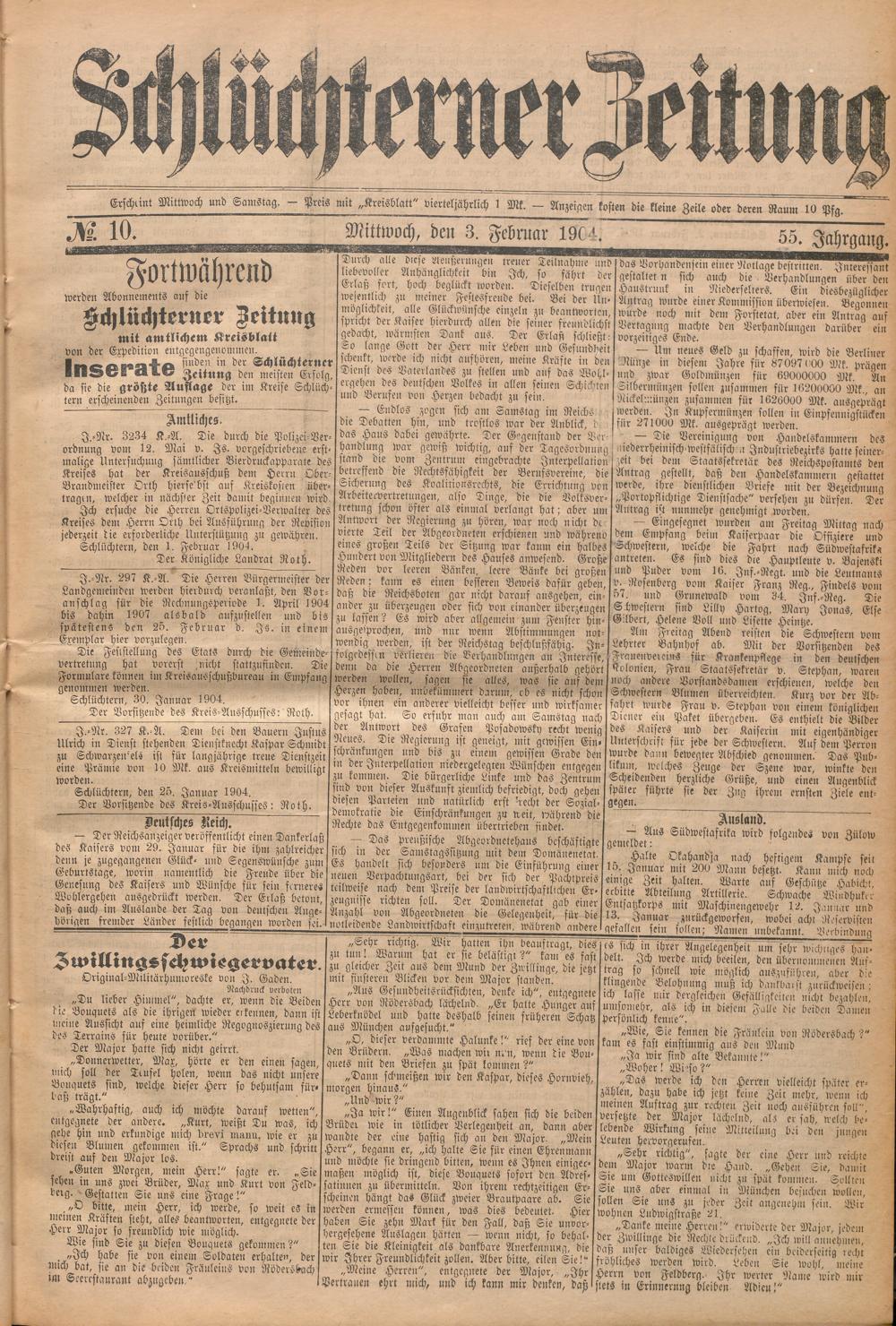 Schlüchterner Zeitung. 1887-1941