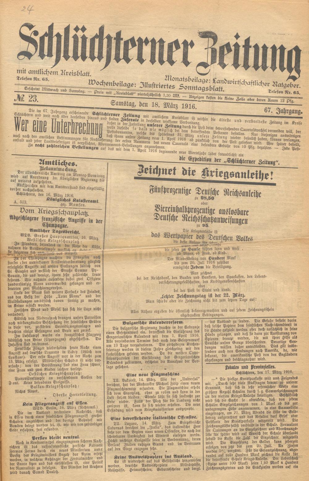 Schlüchterner Zeitung. 1887-1941