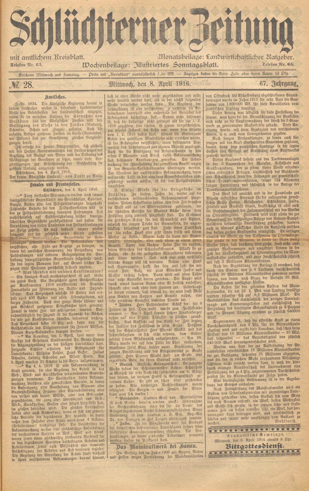Schlüchterner Zeitung. 1887-1941