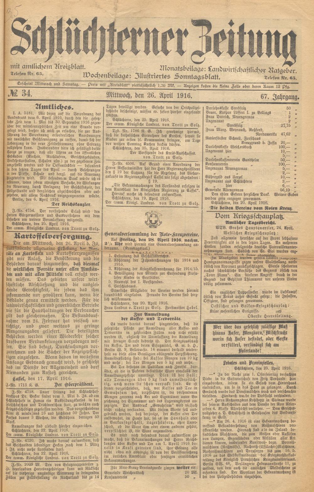 Schlüchterner Zeitung. 1887-1941
