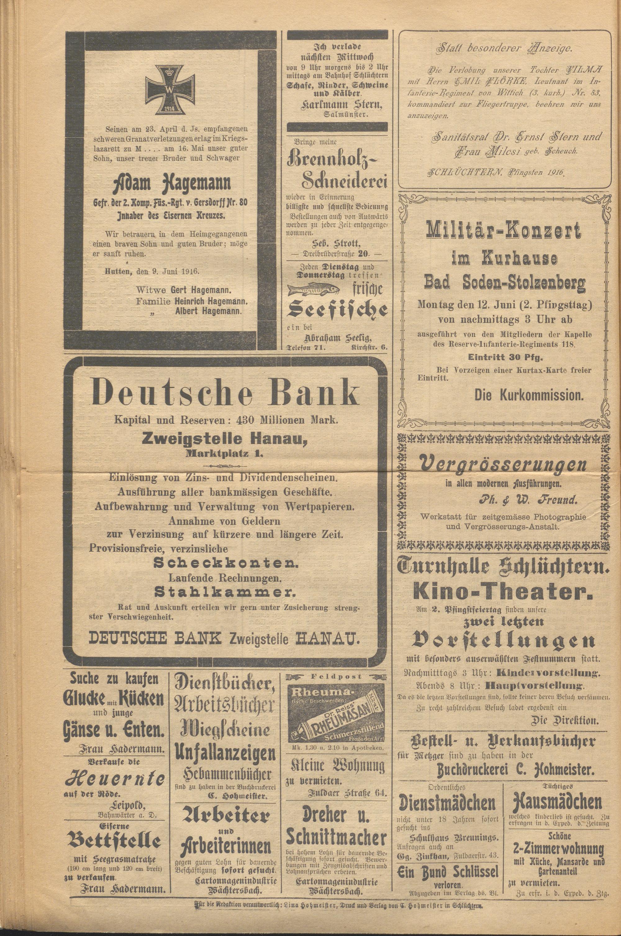 Schlüchterner Zeitung. 1887-1941