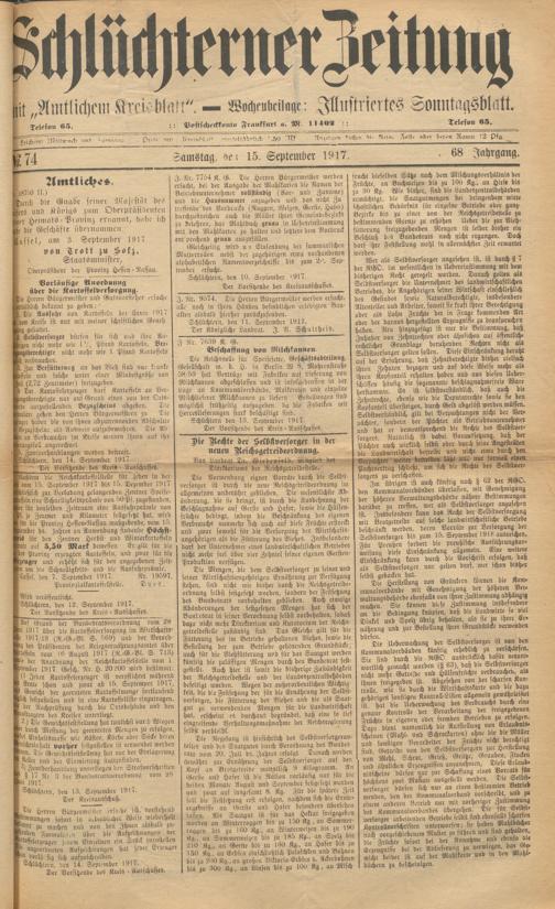 Schlüchterner Zeitung. 1887-1941