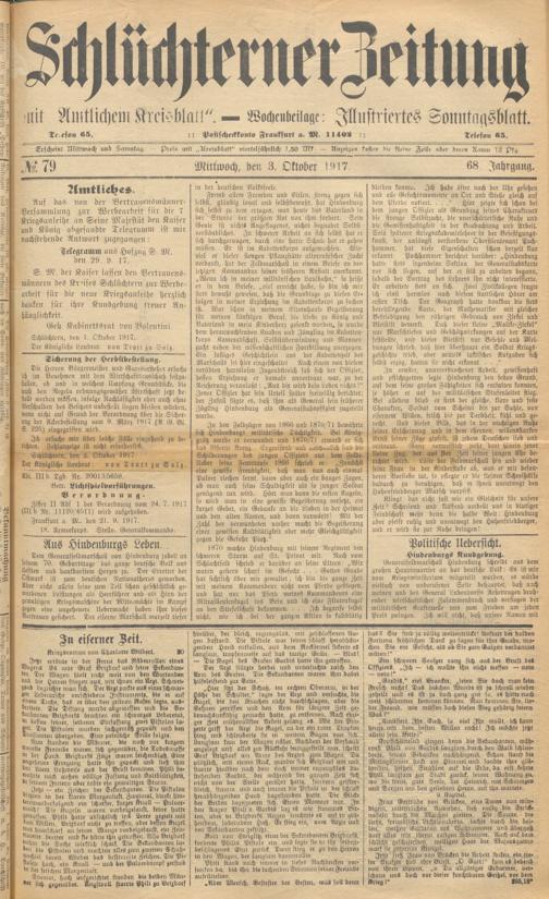 Schlüchterner Zeitung. 1887-1941