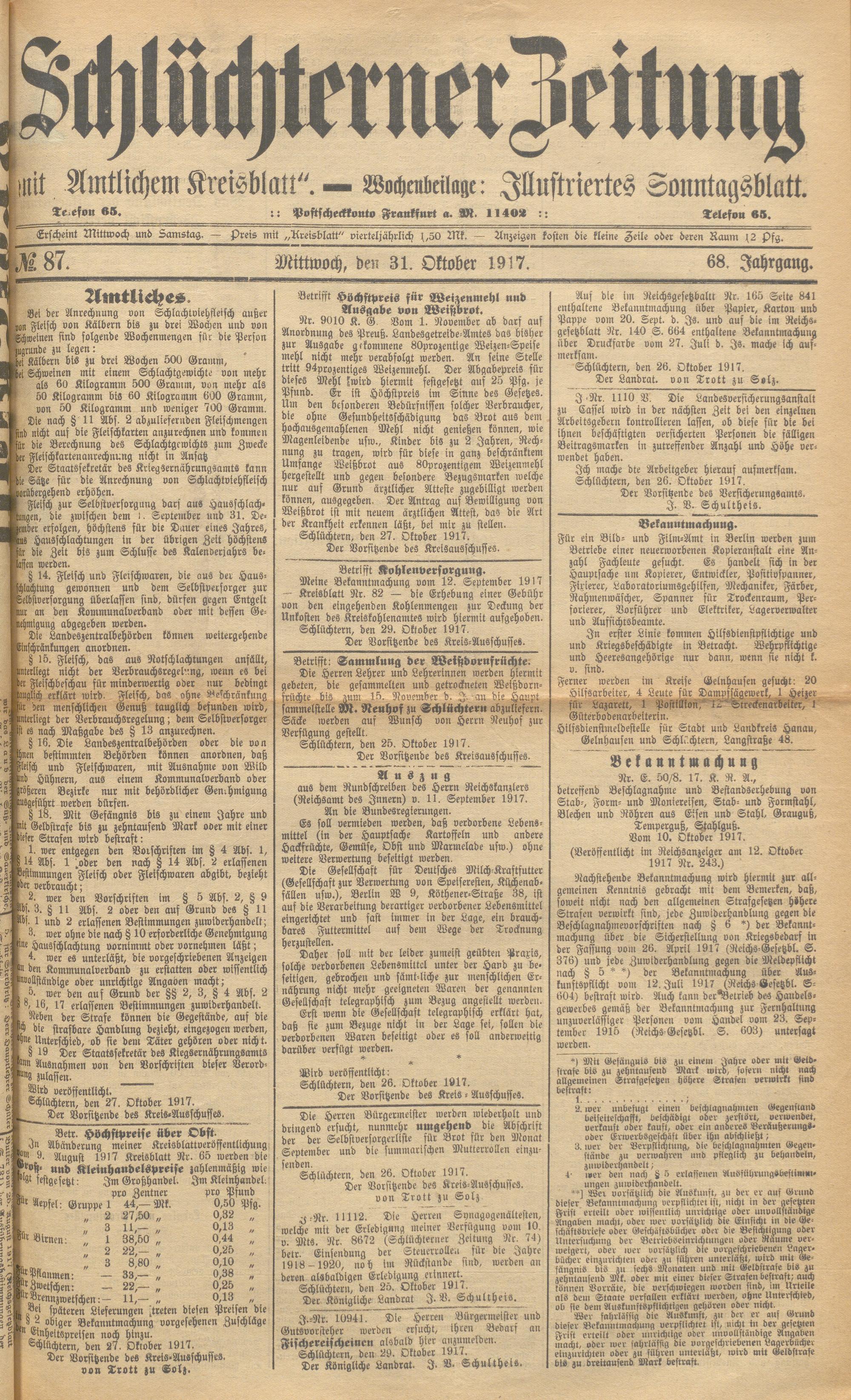 Schlüchterner Zeitung. 1887-1941