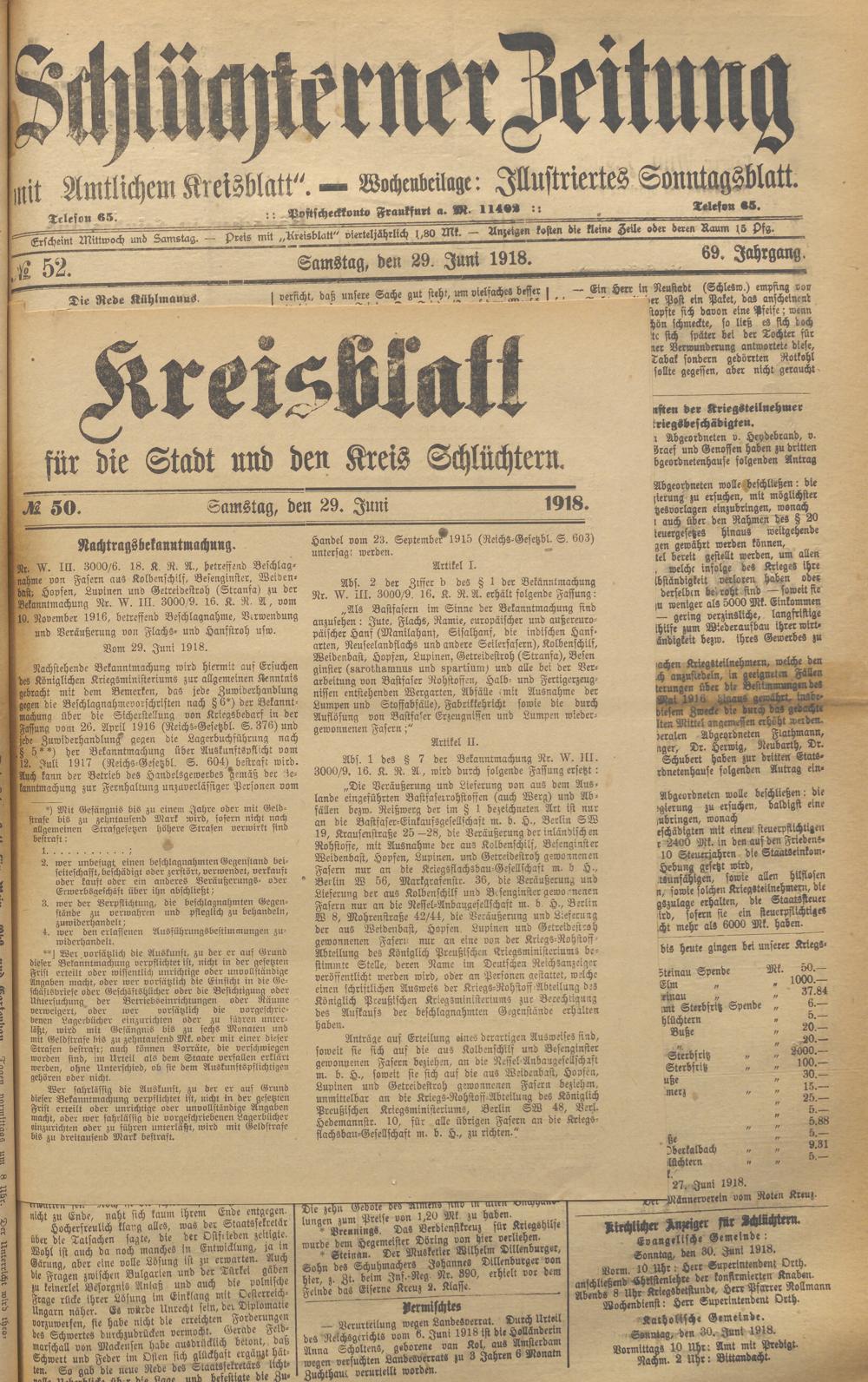 Schlüchterner Zeitung. 1887-1941