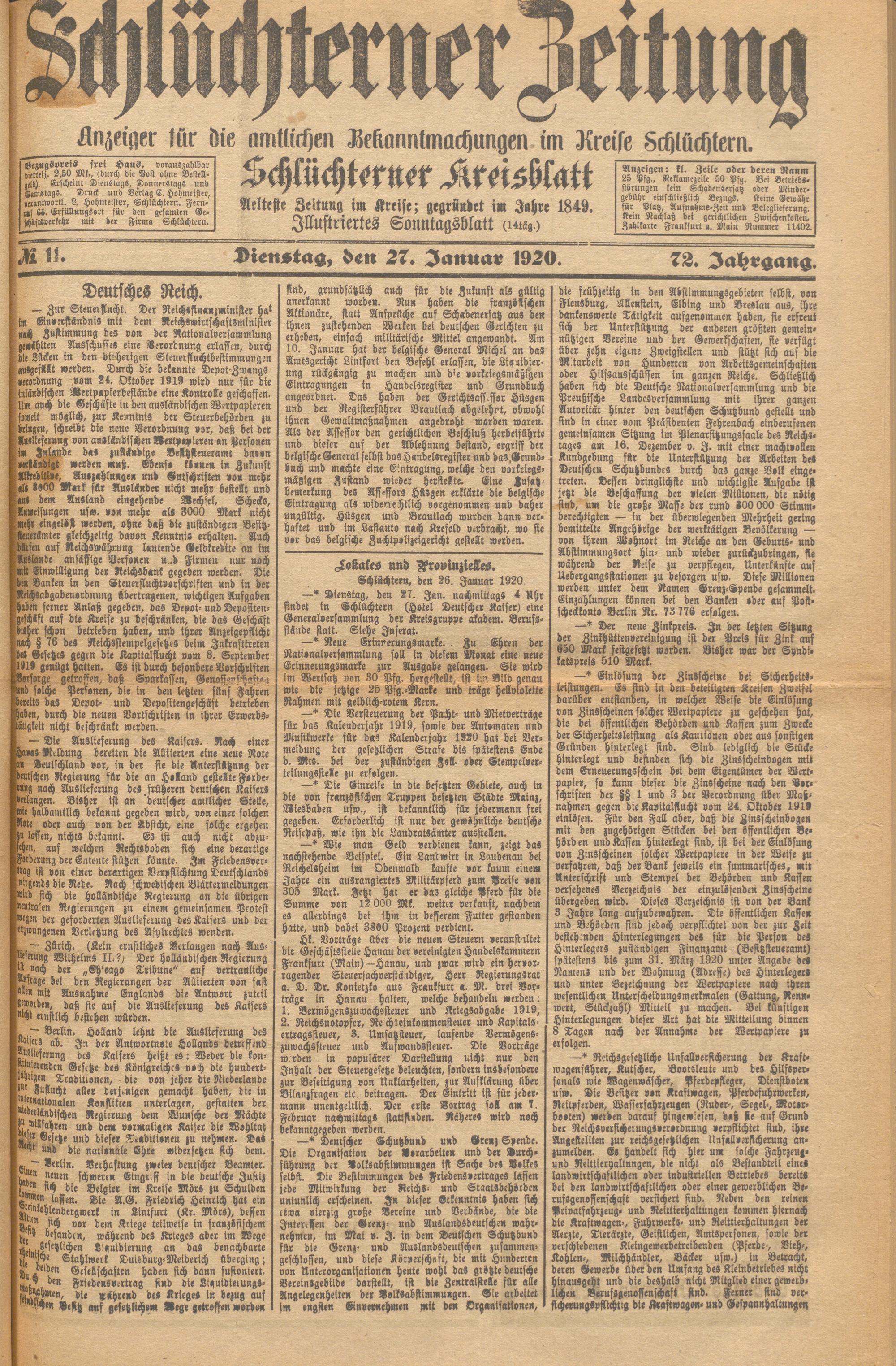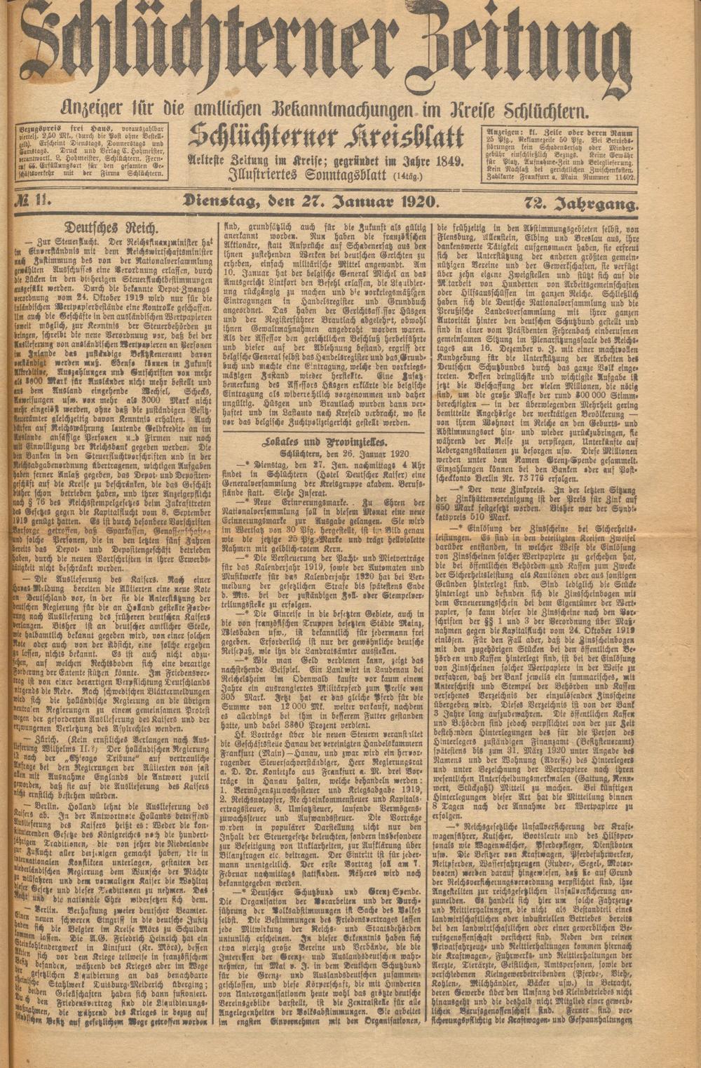Schlüchterner Zeitung. 1887-1941
