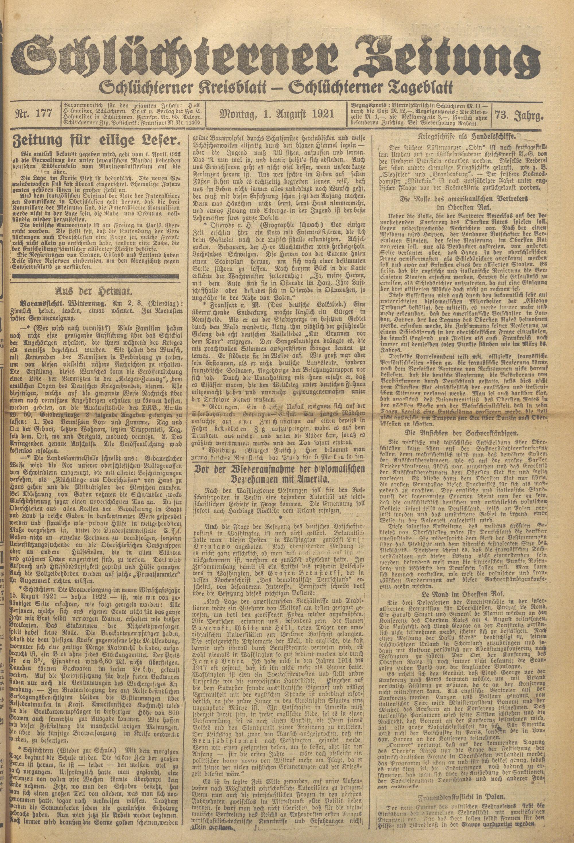 Schlüchterner Zeitung. 1887-1941