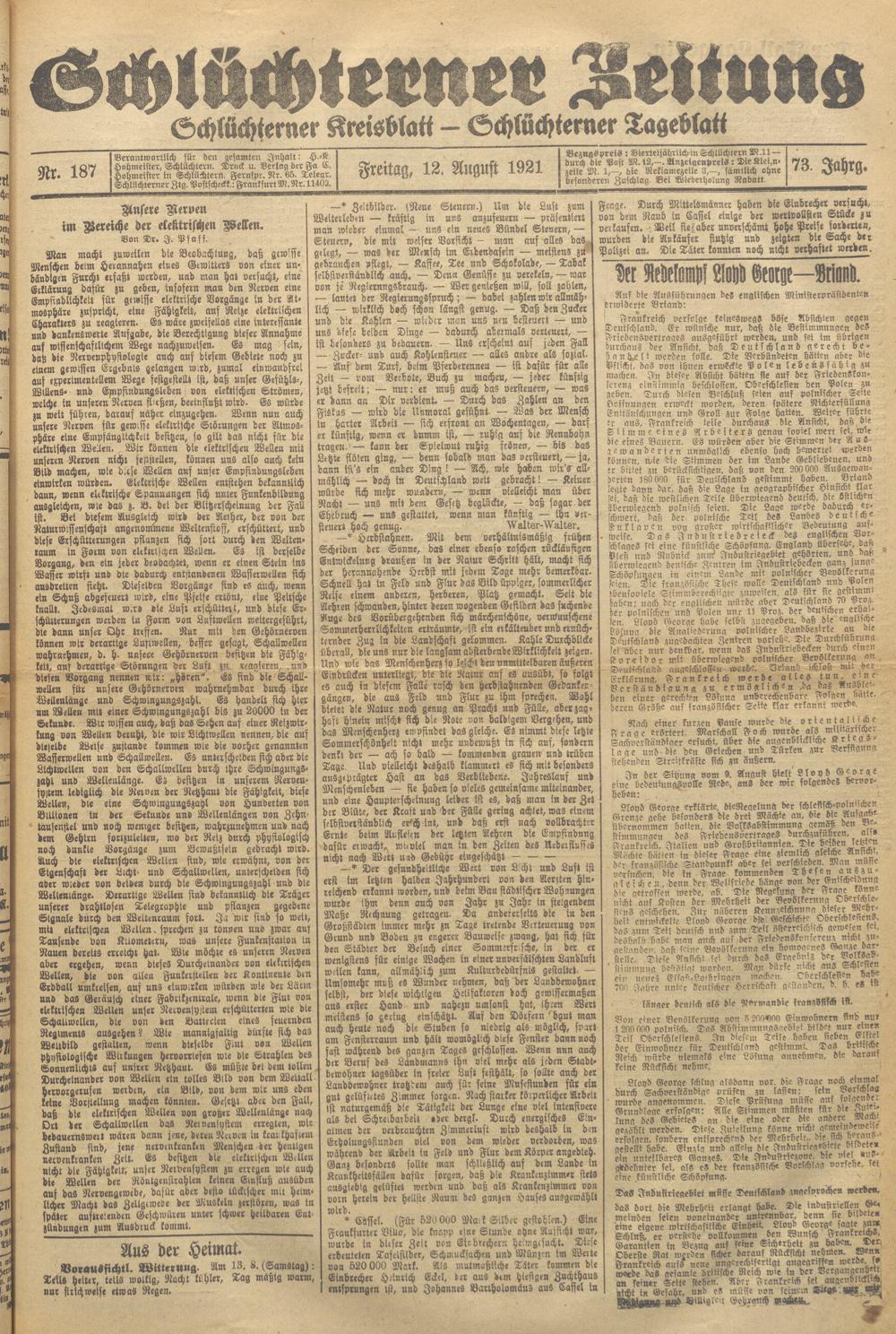 Schlüchterner Zeitung. 1887-1941