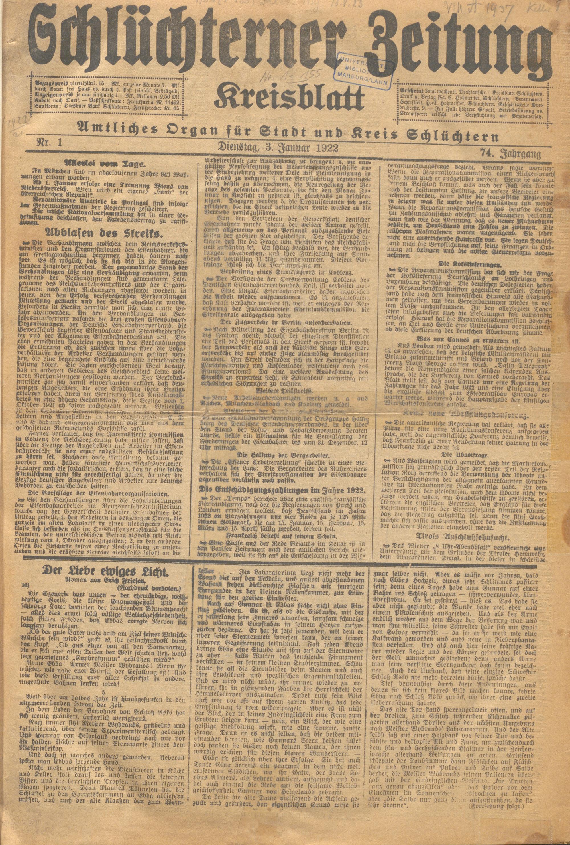 Schlüchterner Zeitung. 1887-1941