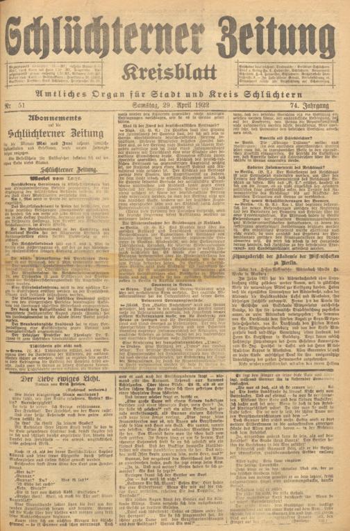 Schlüchterner Zeitung. 1887-1941