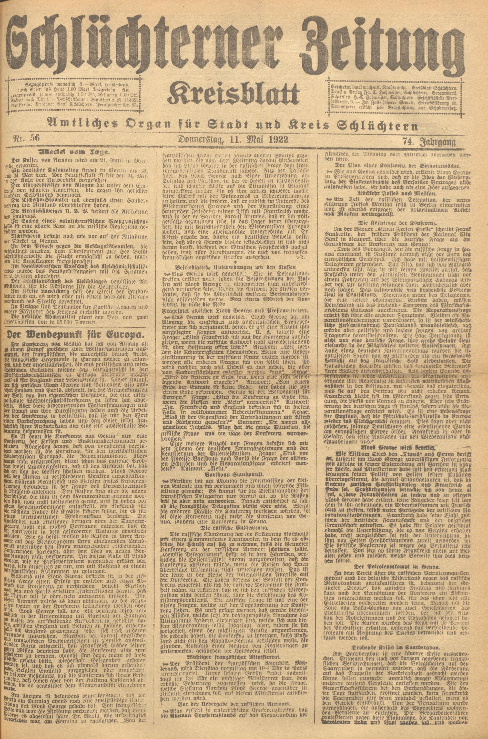 Schlüchterner Zeitung. 1887-1941