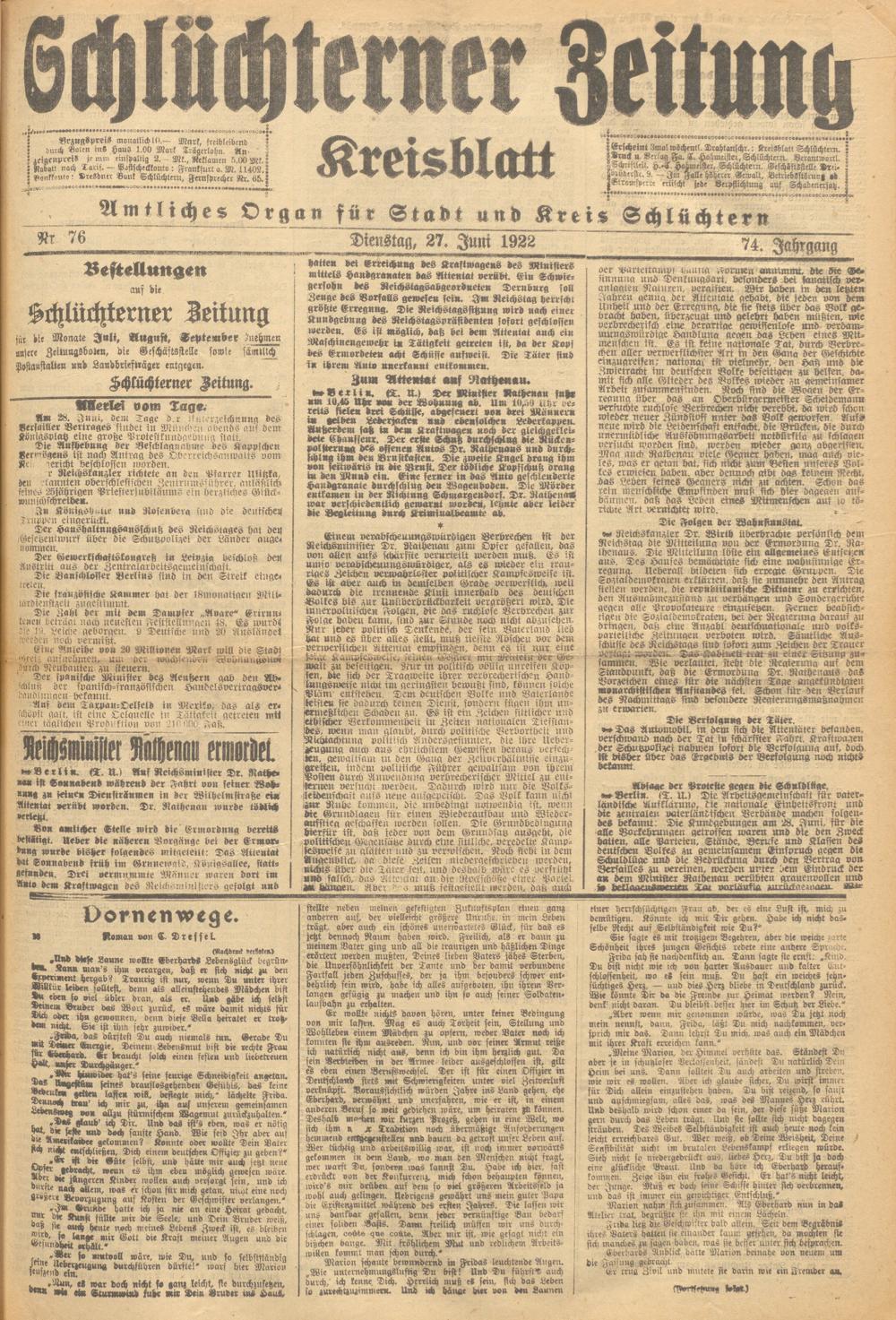 Schlüchterner Zeitung. 1887-1941