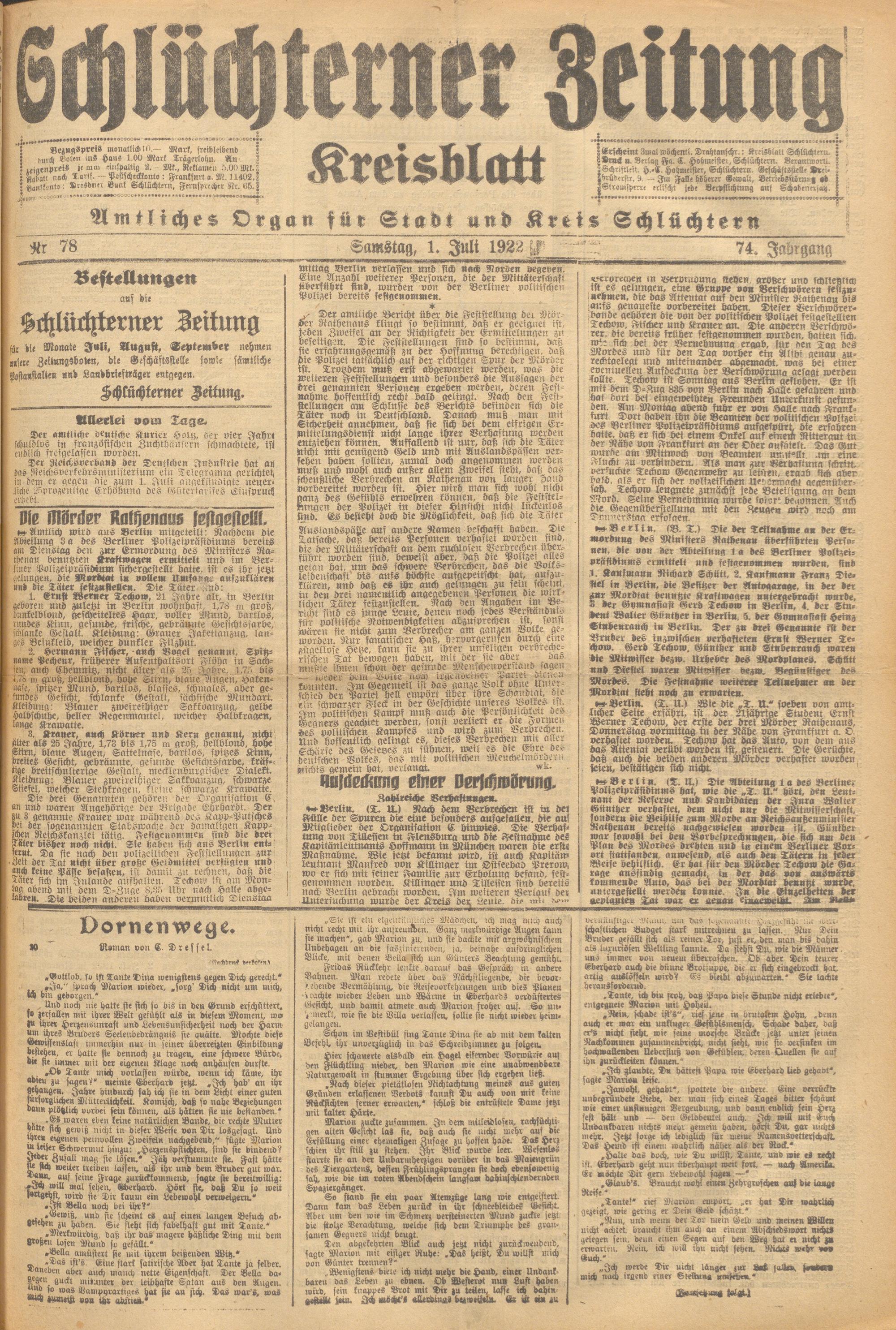 Schlüchterner Zeitung. 1887-1941