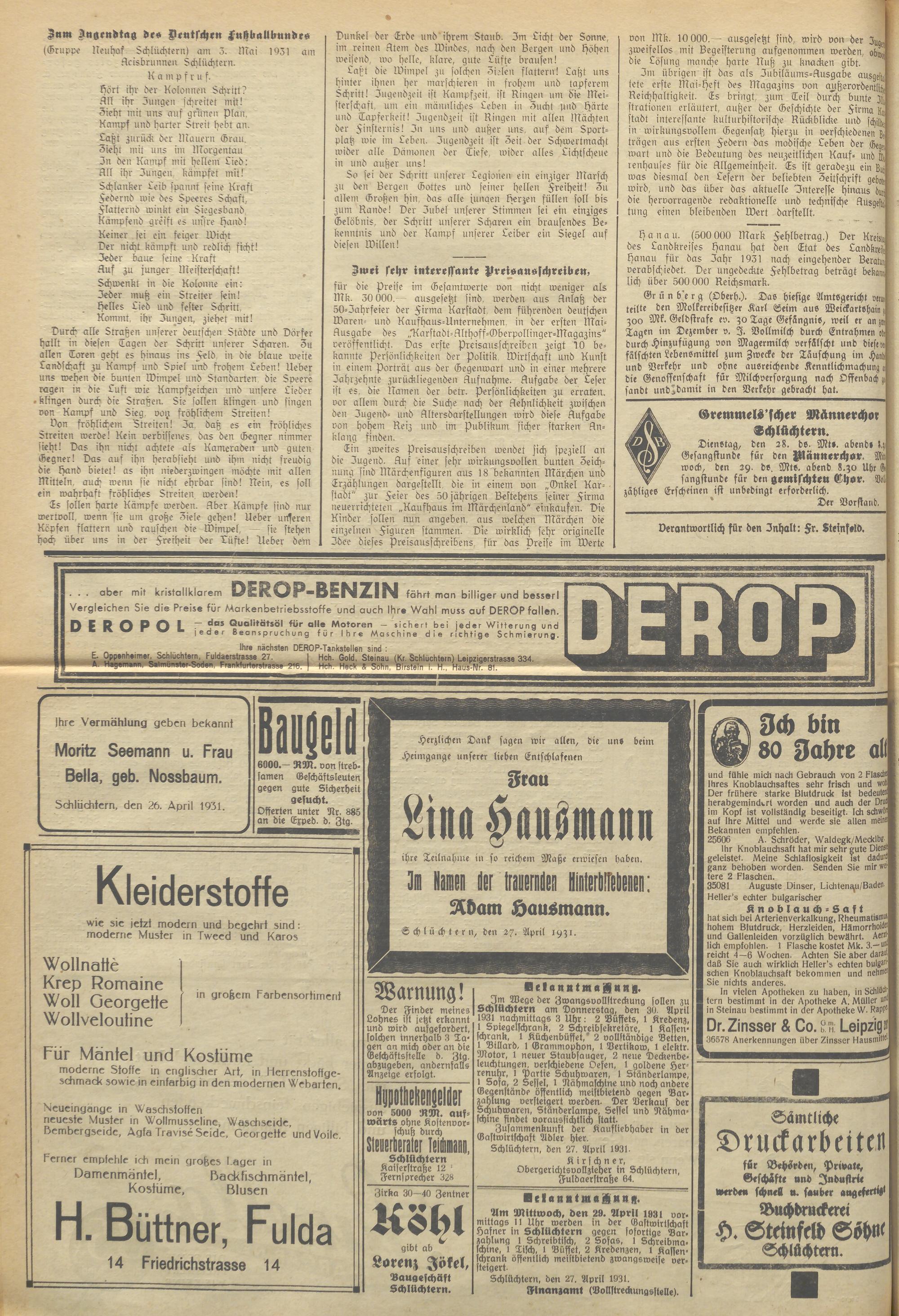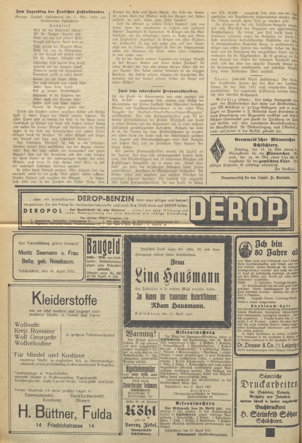 Schlüchterner Zeitung. 1887-1941