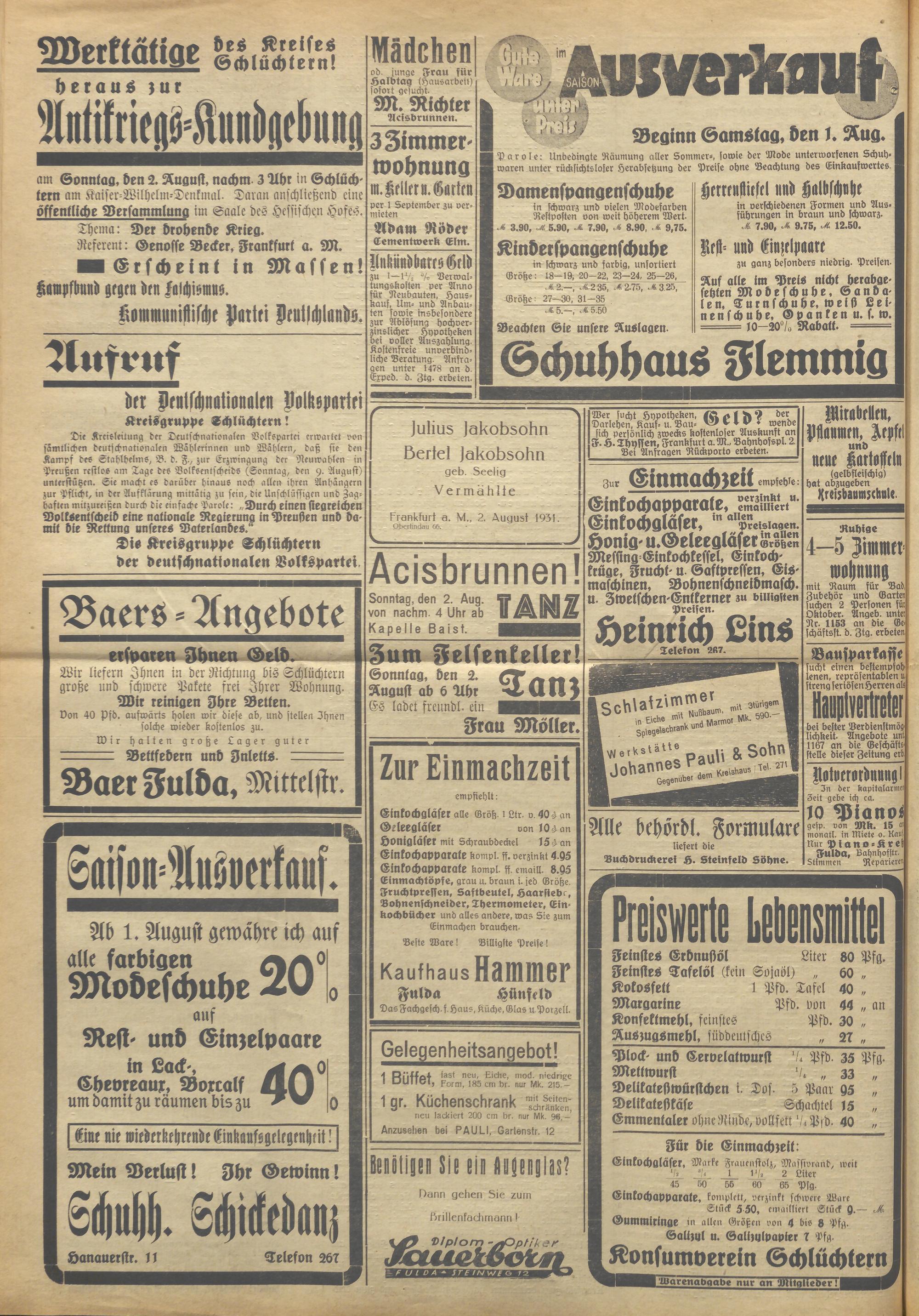 Schlüchterner Zeitung. 1887-1941