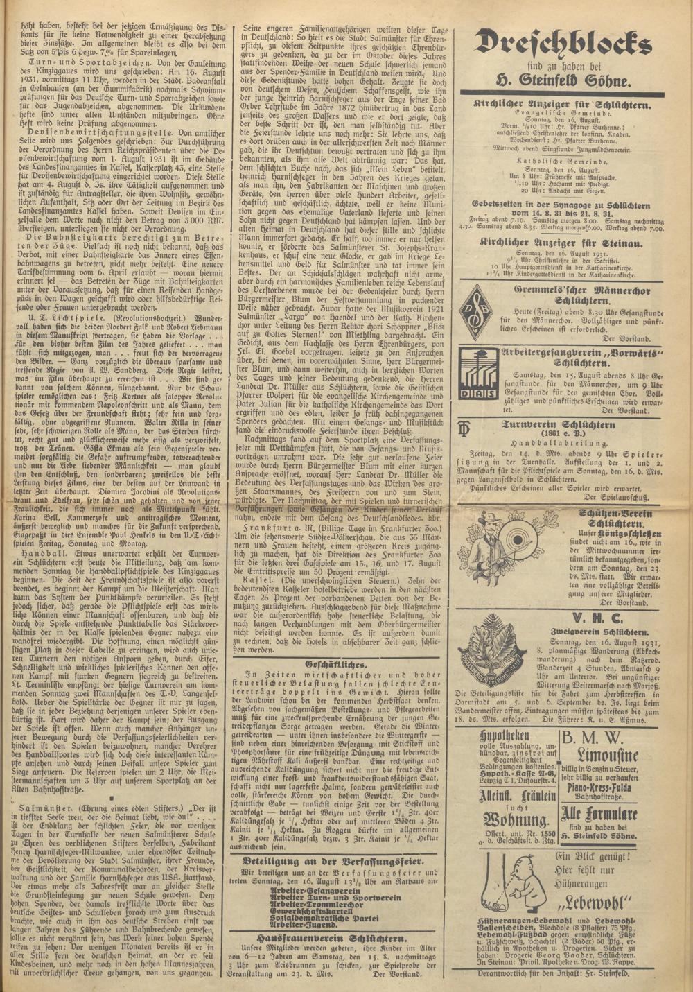 Schlüchterner Zeitung. 1887-1941