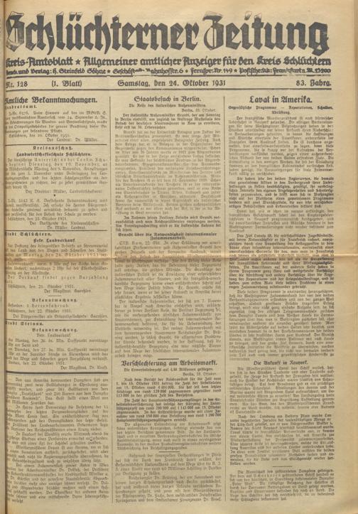 Schlüchterner Zeitung. 1887-1941