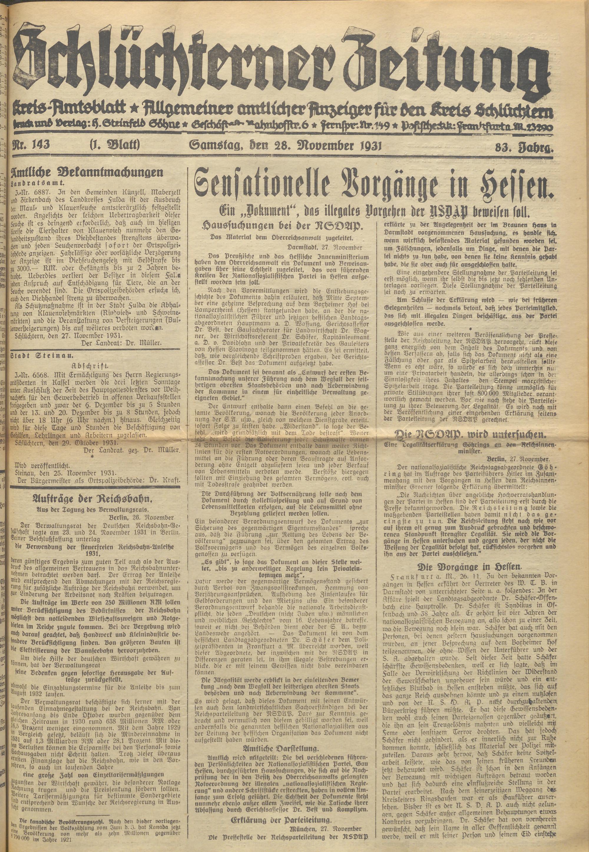 Schlüchterner Zeitung. 1887-1941