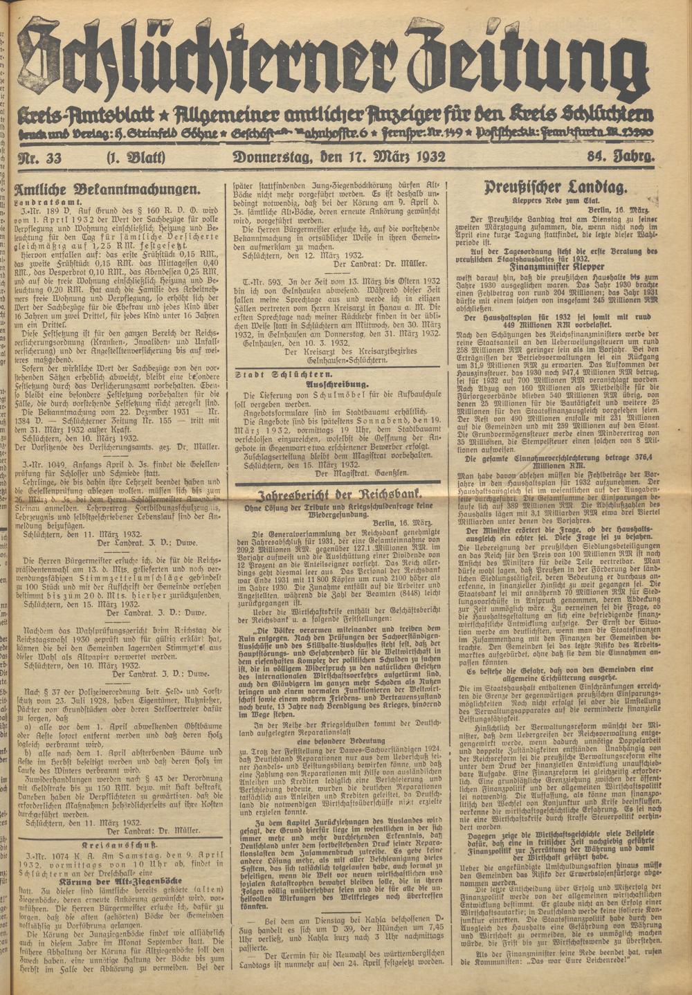 Schlüchterner Zeitung. 1887-1941