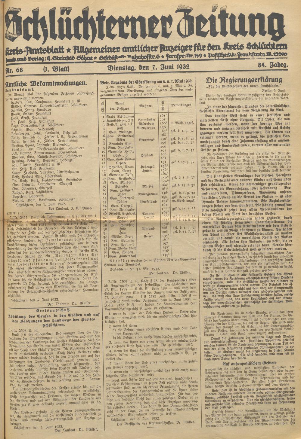 Schlüchterner Zeitung. 1887-1941