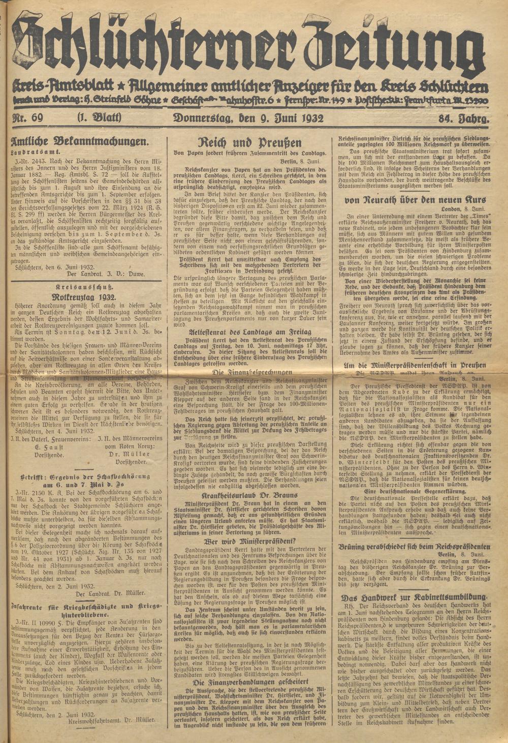 Schlüchterner Zeitung. 1887-1941