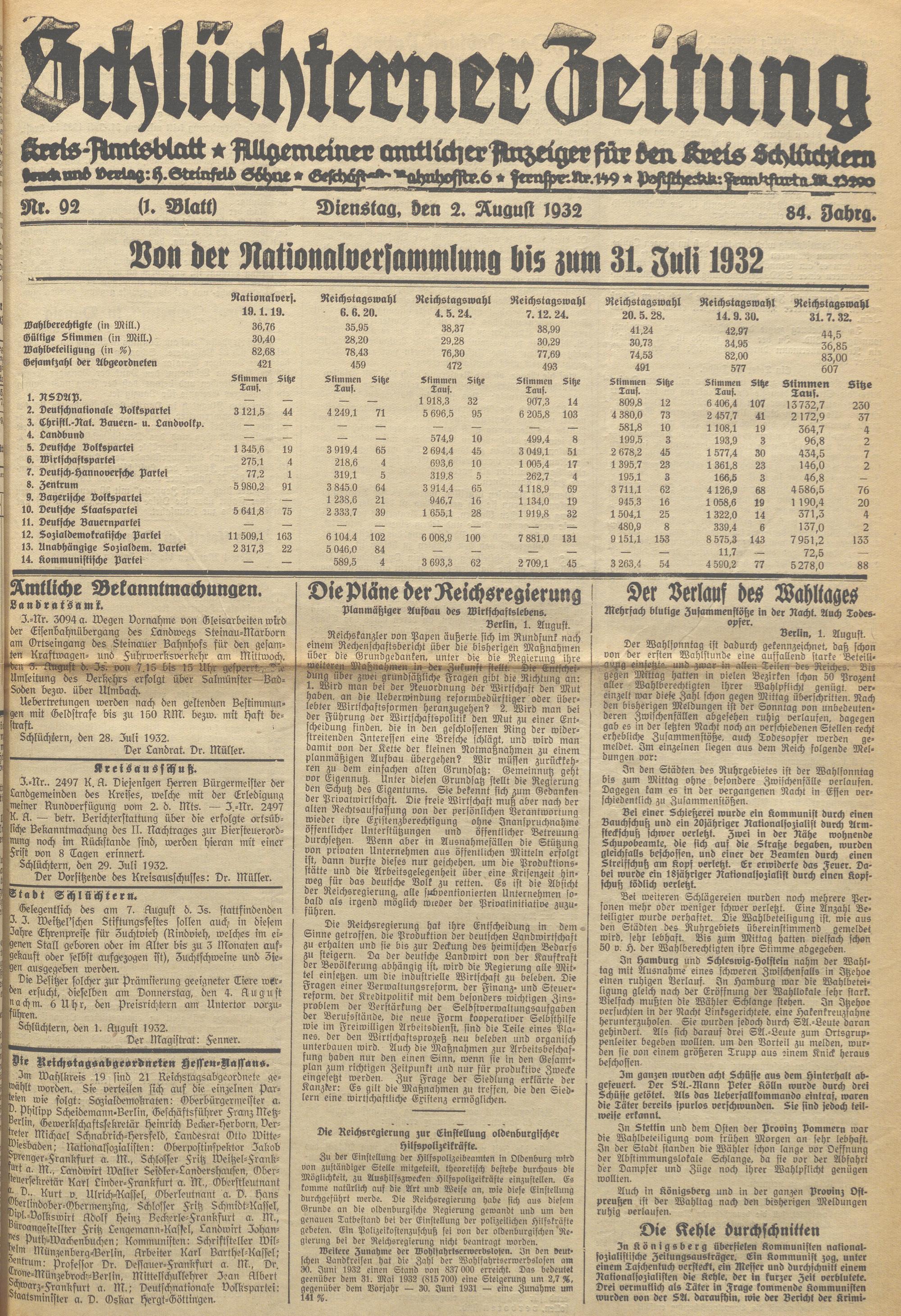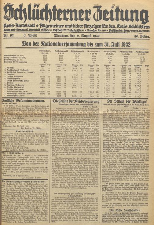 Schlüchterner Zeitung. 1887-1941